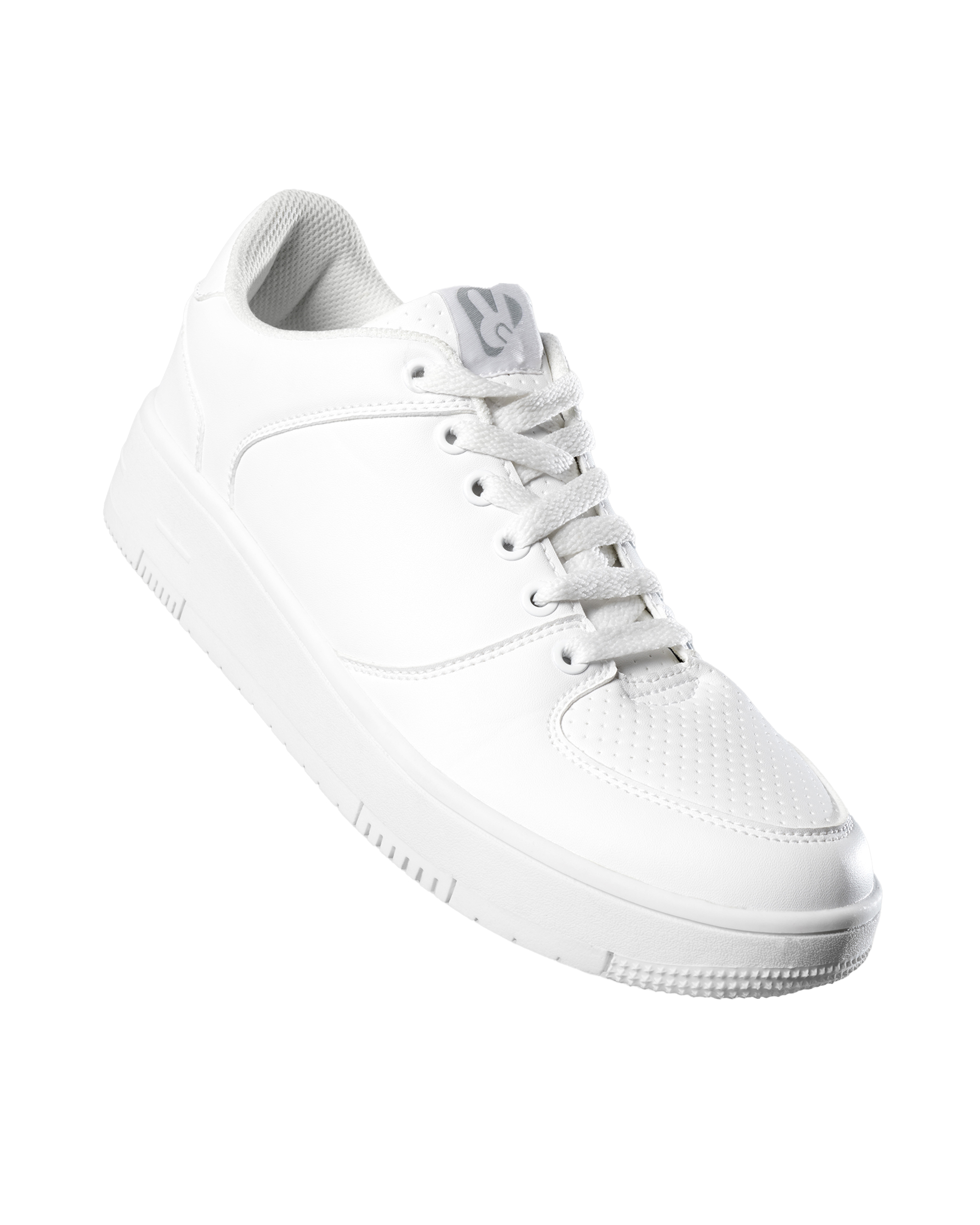 Încălțăminte sport clasici. Închidere cu ochiuri metalice și șireturi plate asortate. Partea superioară: PU și PU micro-perforat – talpă: TPR – interior: plasă de poliester căptușită. Branț din spumă.