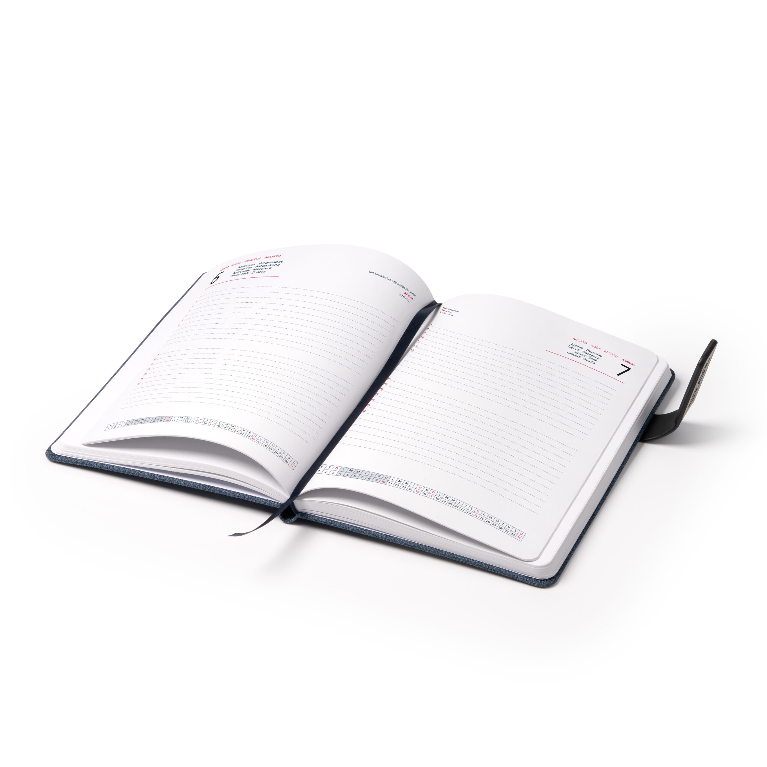 Jurnal format A5 din poliester RPET reciclat cu copertă magnetică. 320 de pagini plus 4 pagini cu hărți. Marker de pagină color asortat cu coperta. Imprimare 2+2 culori. Interior din hârtie albă.