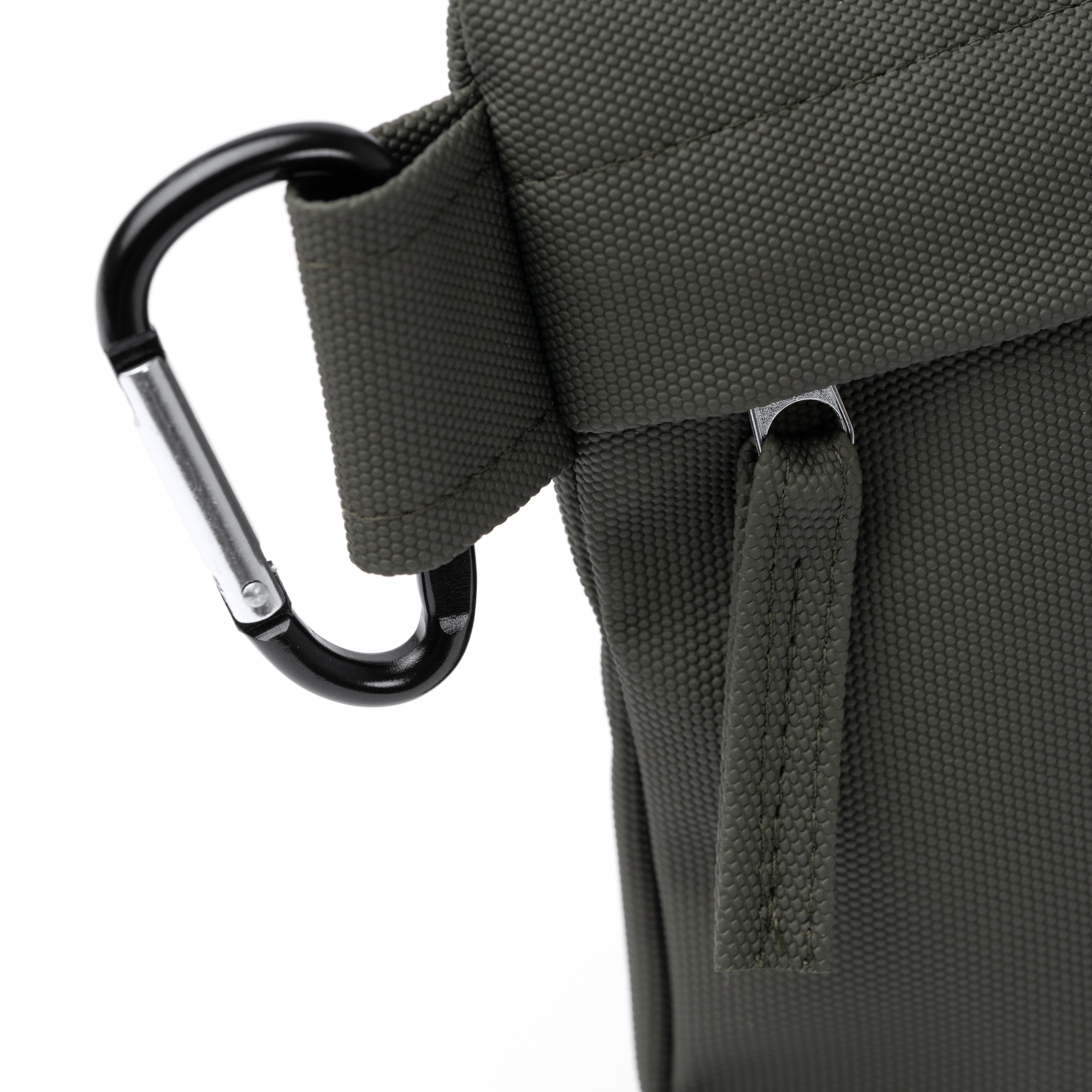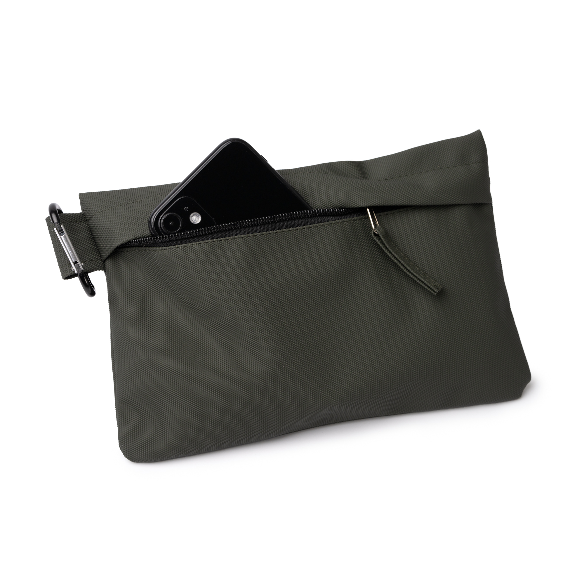 Geantă de toaletă din poliuretan moale, finisată în culoare solidă. Are o închidere cu fermoar și un sistem de tragere a fermoarului. Include o carabină pentru facilitarea transportului.