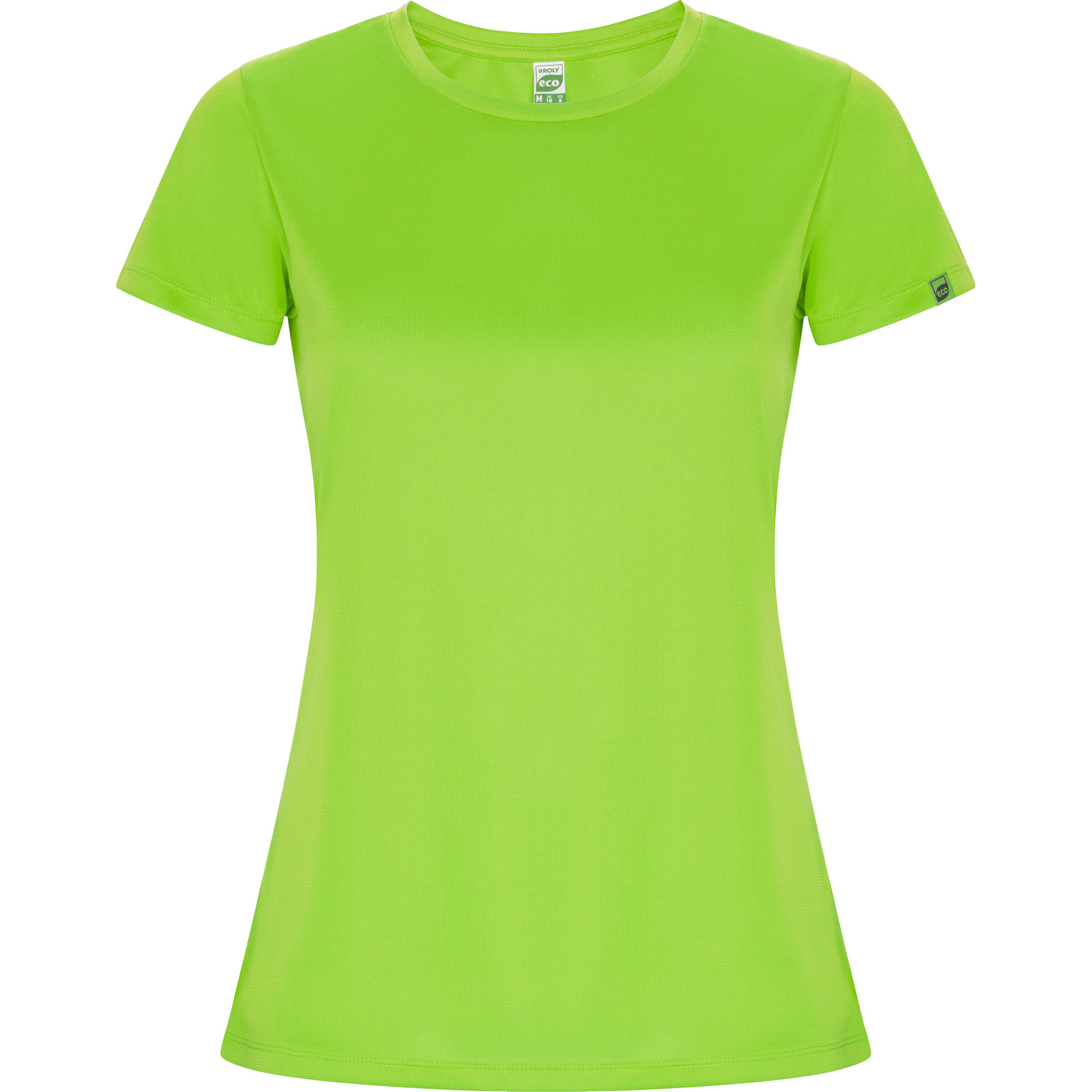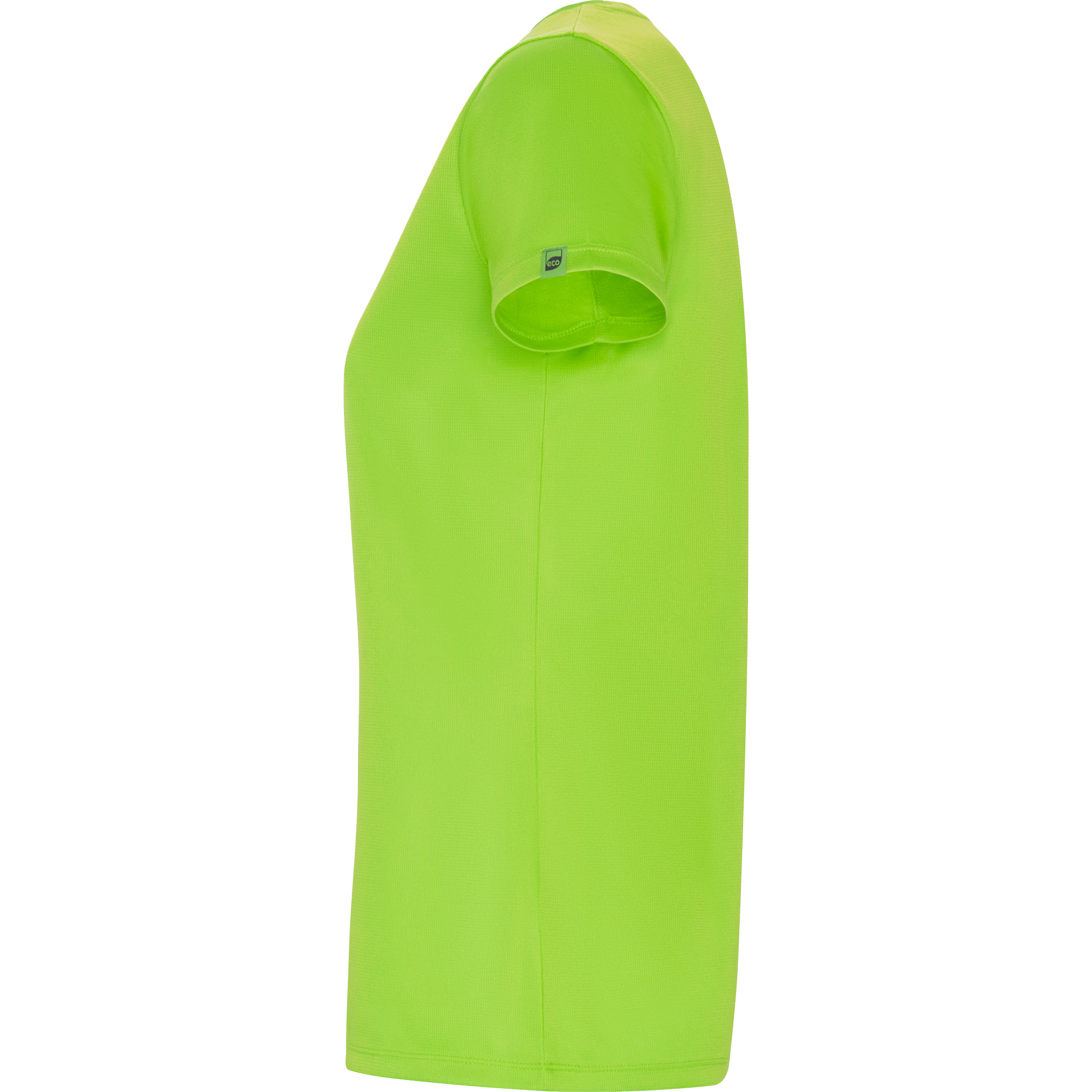 Tricou tehnic respirabil, cu croială mulată și mâneci scurte. Poliester reciclat. Roly Control Dry – tehnologie pentru uscare rapidă și control al umidității. Guler rotund și bandă interioară asortate cromatic. Etichetă eco țesută. Certificat GRS.