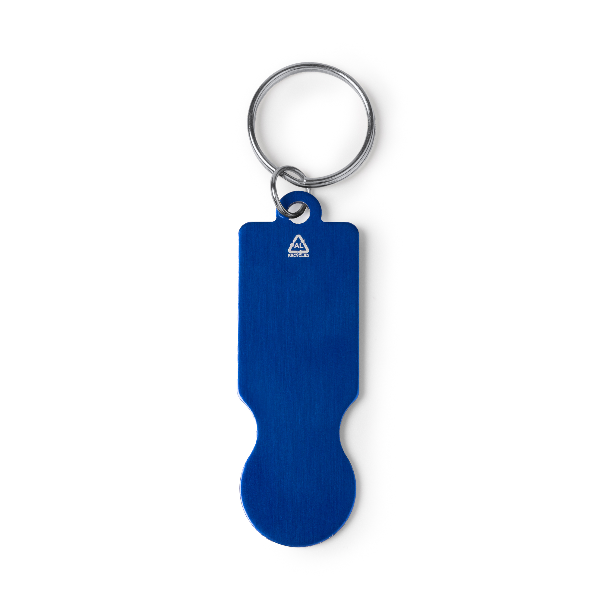 Breloc din aluminiu reciclat cu monedă pentru căruciorul de cumpărături. Zonă mare de marcare.