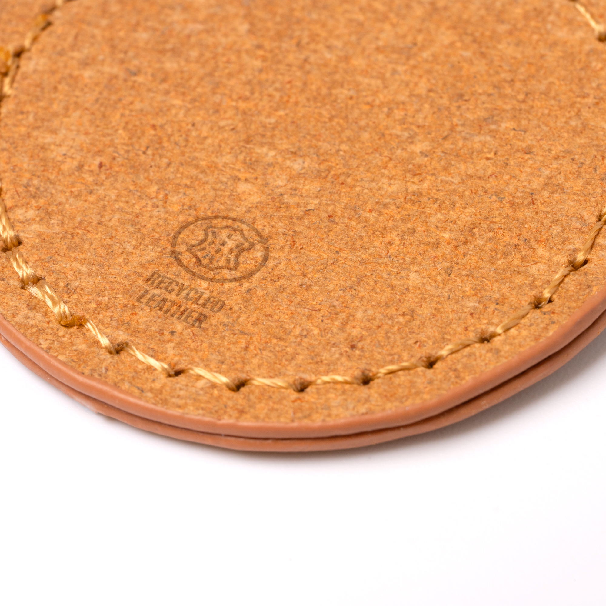 Breloc din piele reciclată în două modele, cu inel metalic.