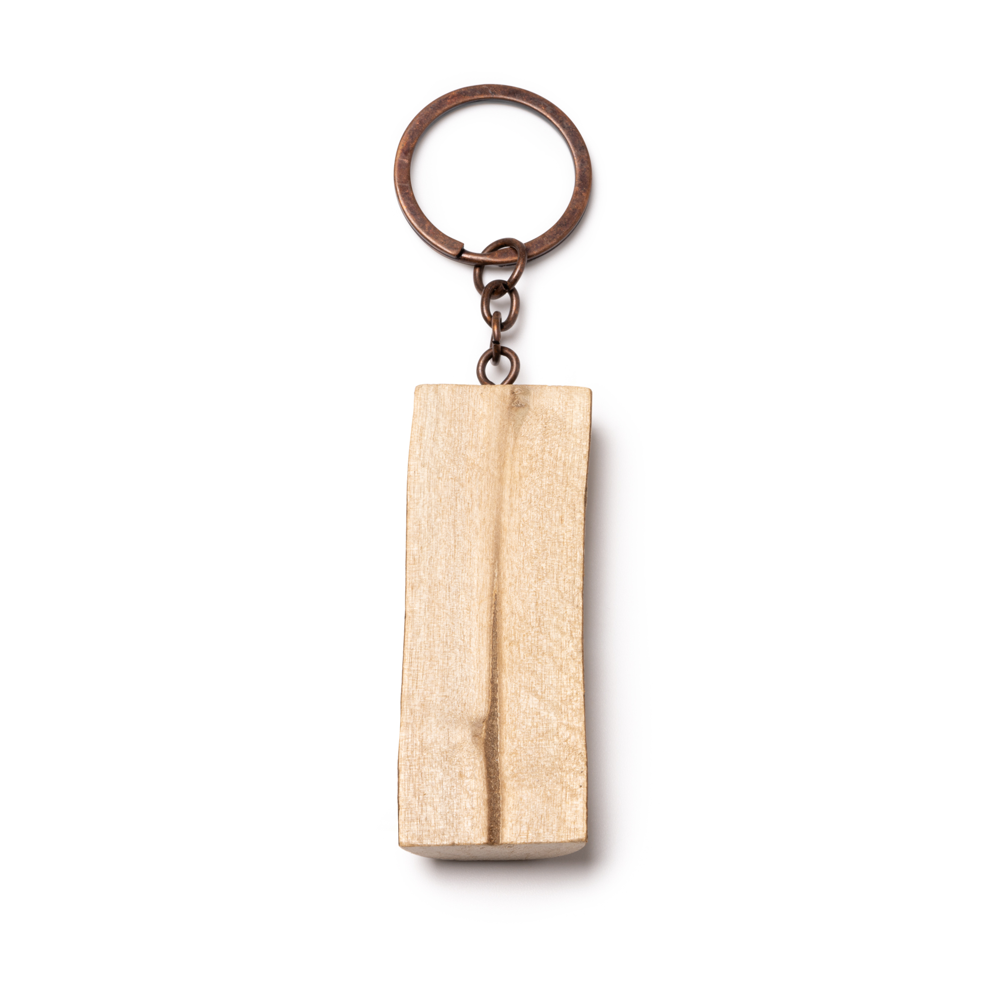 Breloc portbagaj din lemn cu crestătură. Inel metalic