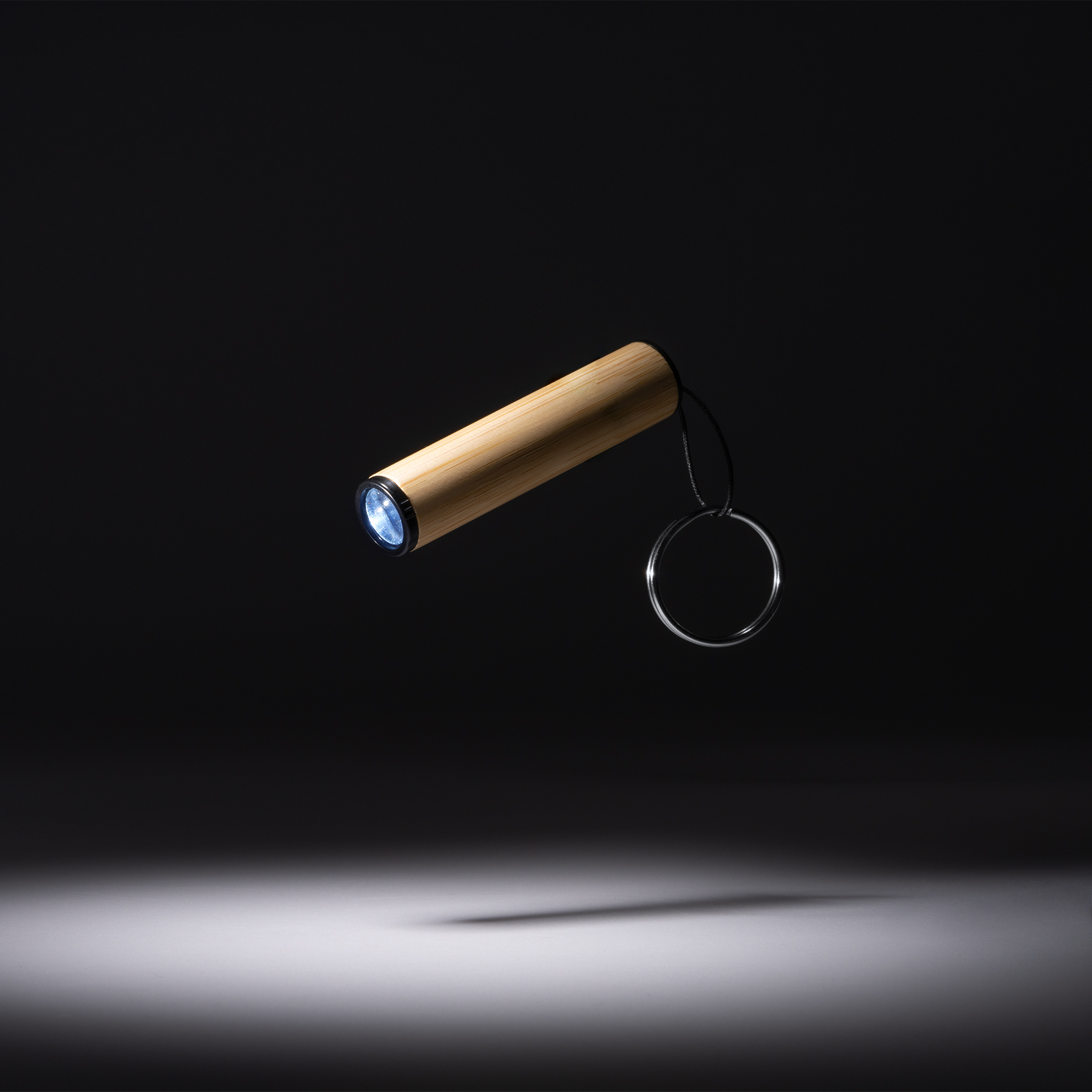 Breloc lanternă cu corp din bambus, este un accesoriu practic și elegant care combină funcționalitatea și estetica naturală. Fabricat din bambus durabil, acest breloc are un design compact și ușor, care îl face ideal pentru a fi purtat în buzunar sau agățat cu cheile. Include o lanternă LED care oferă iluminare puternică în situații de lumină slabă. În plus, sunt incluse trei baterii LR41, asigurând utilizarea imediată. Cu combinația sa de materiale ecologice și utilitate practică, acest breloc cu lanternă reprezintă un must-have pentru oricine preocupat de mediu și funcționalitate în viața de zi cu zi.