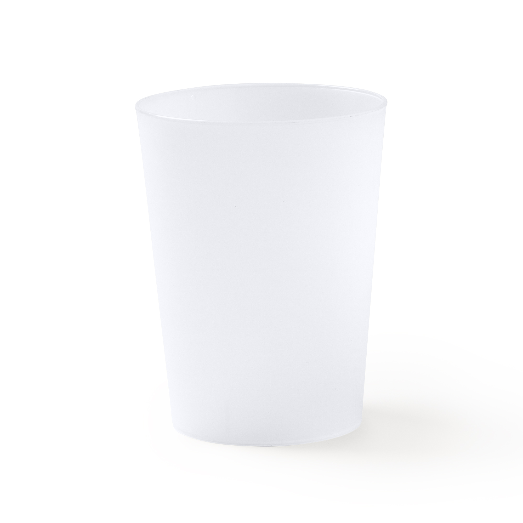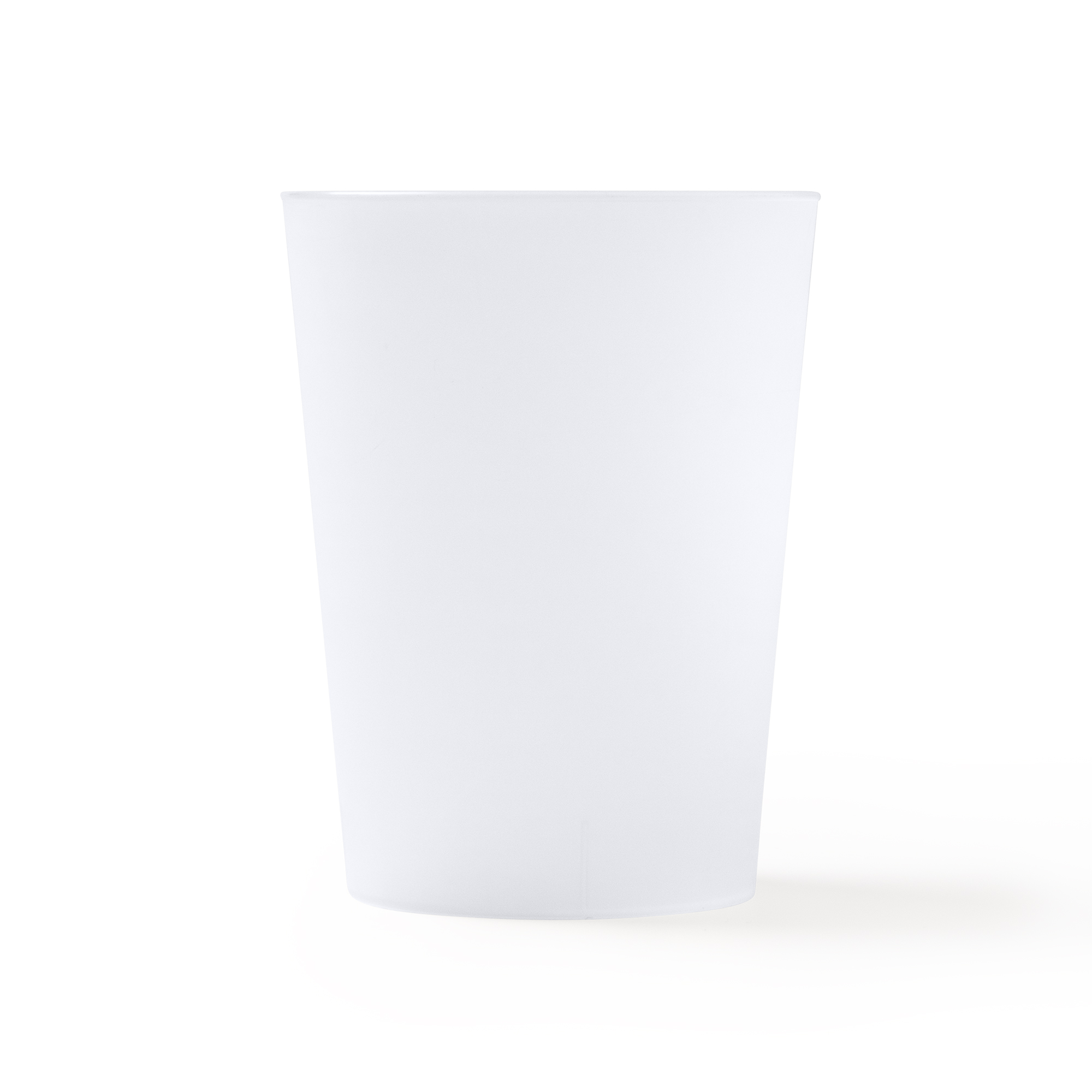 Cană reutilizabilă din polipropilenă ductilă, rezistentă, cu o capacitate de 500 ml.