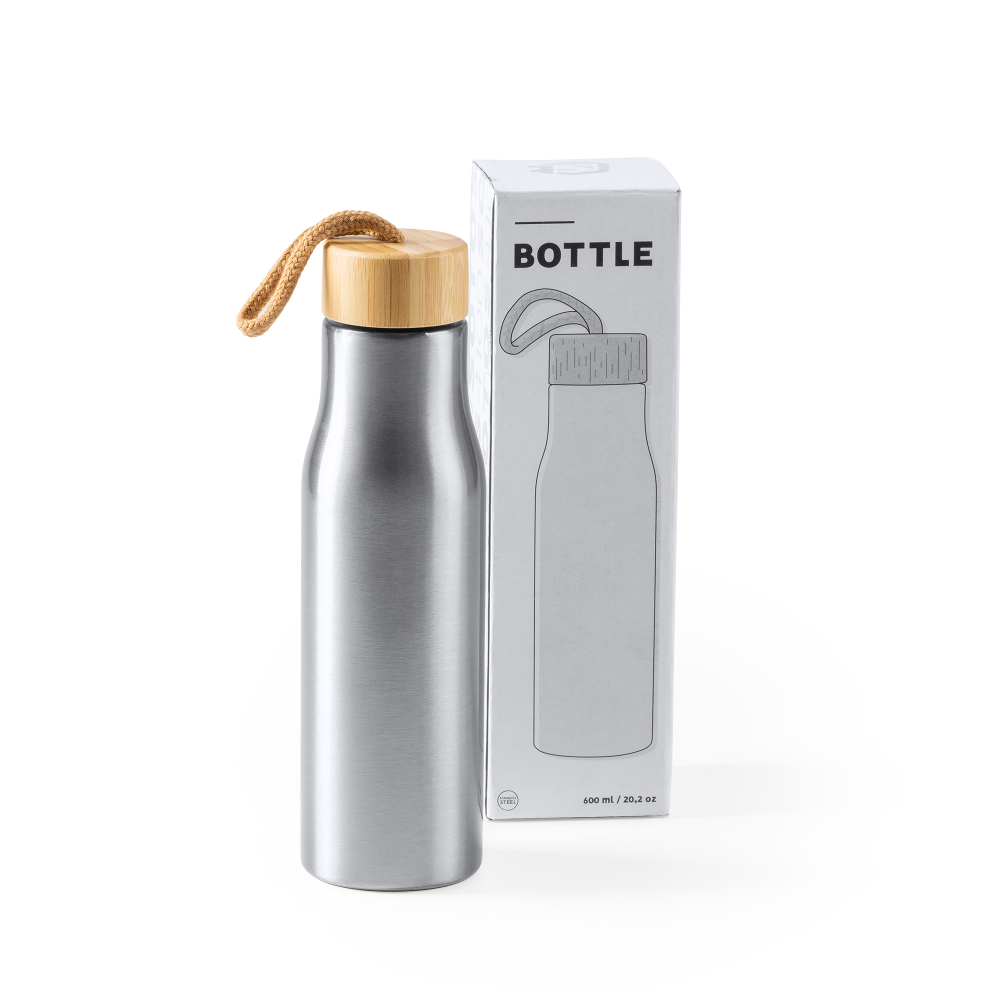 Sticlă din oțel inoxidabil 304 cu capac din bambus. Include curea pentru transport. Capacitate de 600 ml. Promovați-vă compania cu sticla Sotos.
