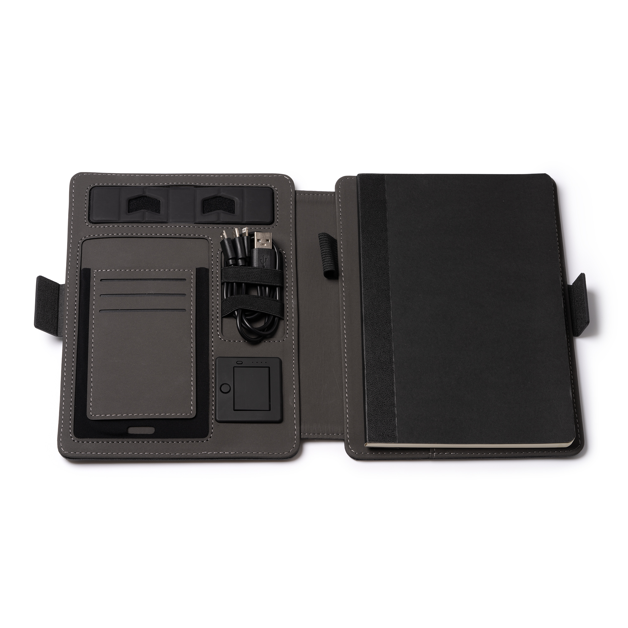 Cu sistemul său de închidere magnetică, mapa garantează că documentele și bunurile dumneavoastră rămân în siguranță în interior. În plus, dispune de un încărcător wireless încorporat în capac, permițându-vă să încărcați ușor dispozitivele compatibile cu încărcarea wireless.