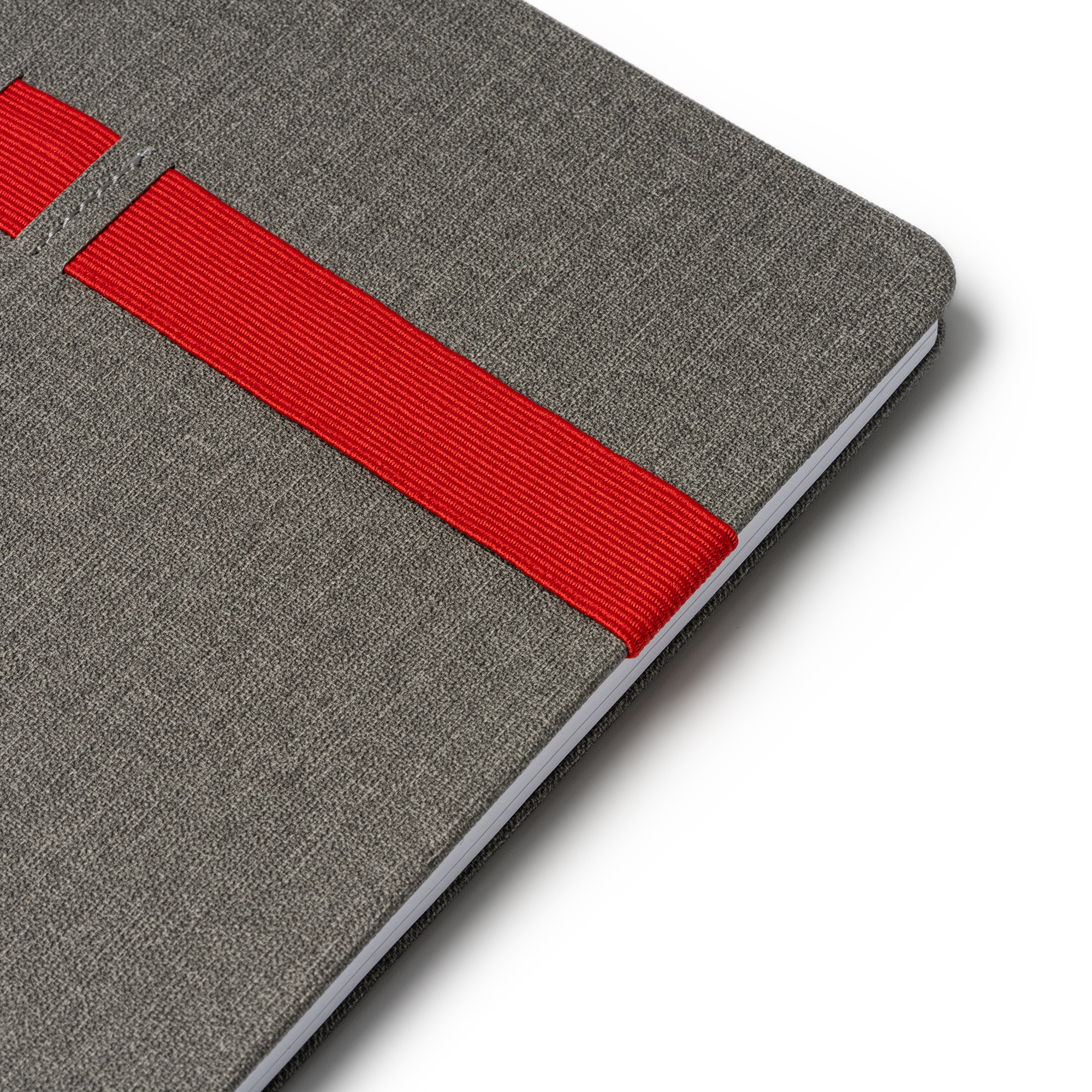 Agendă format A5 cu coperți dure din polietilen tereftalat (PET). Suport pentru stilou și mobil inclus. 80 de coli simple.
