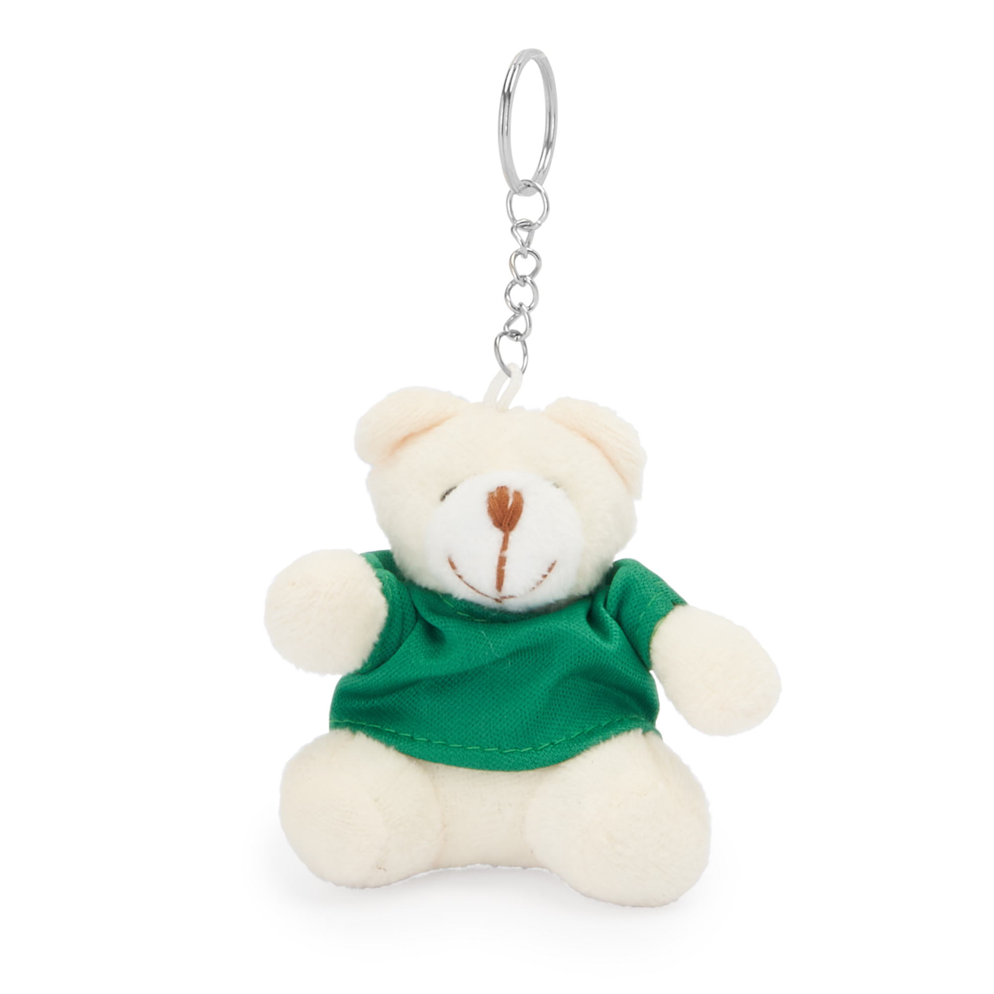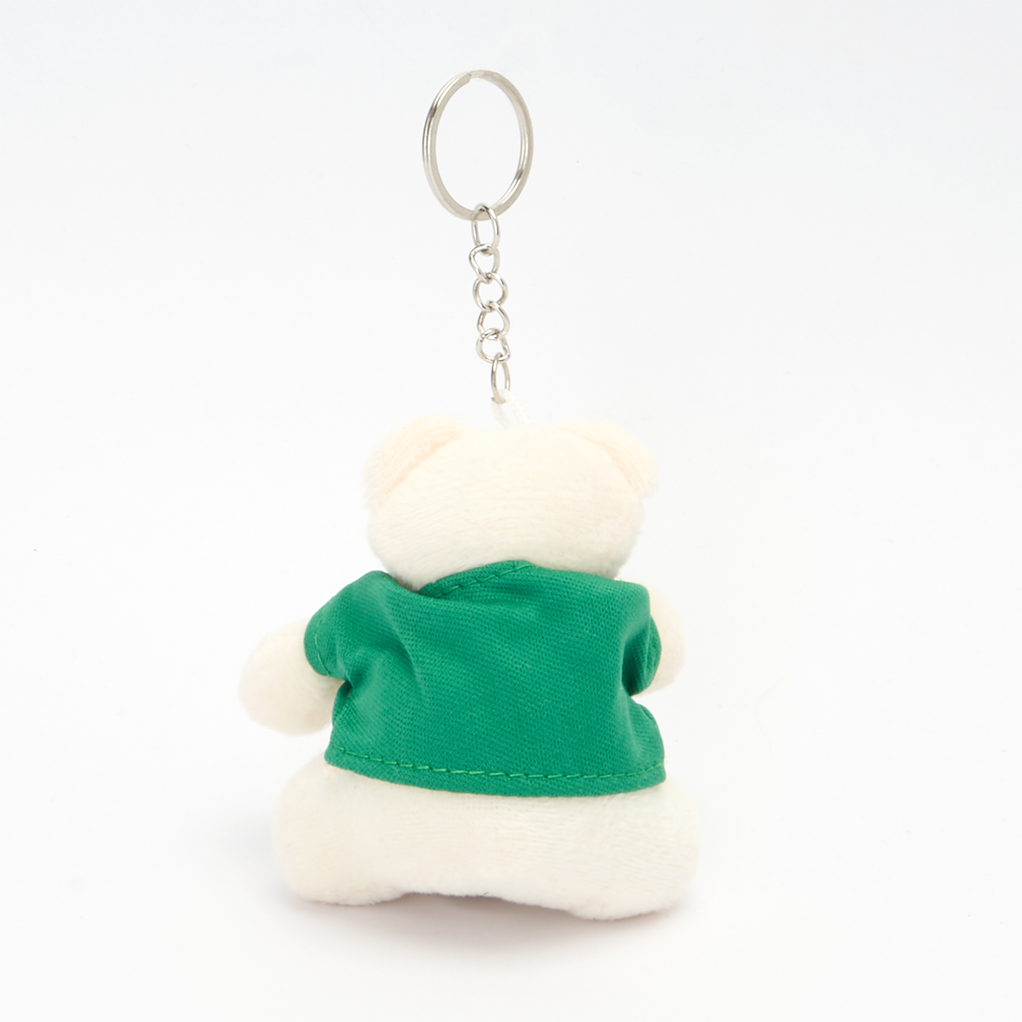 Breloc cu ursuleț de pluș cu tricou colorat, confecționat din poliester suav și plăcut la atingere.