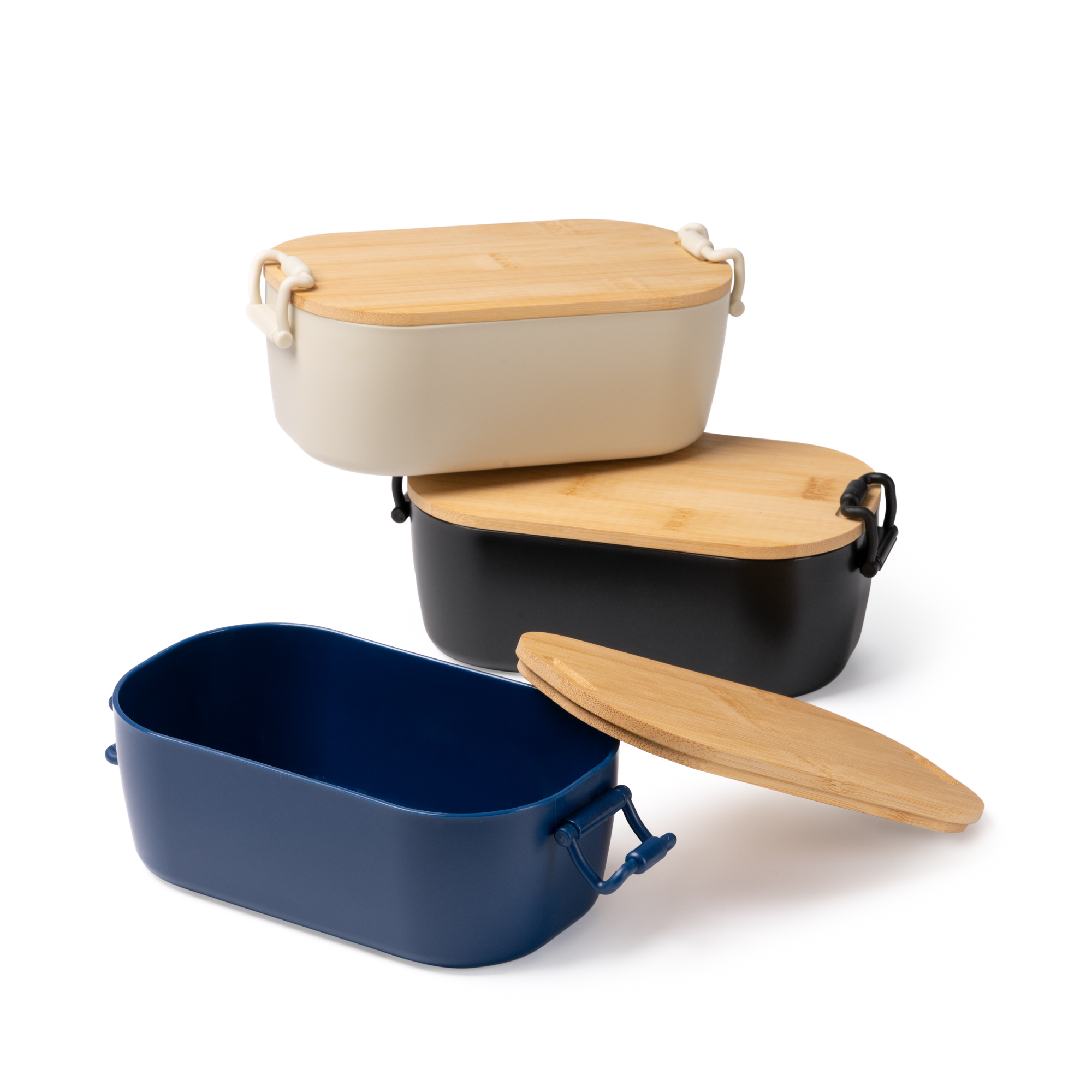 Cutie pentru prânz cu corp din PP și capac din bambus cu sistem de închidere de siguranță. Capacitate: 1 l
