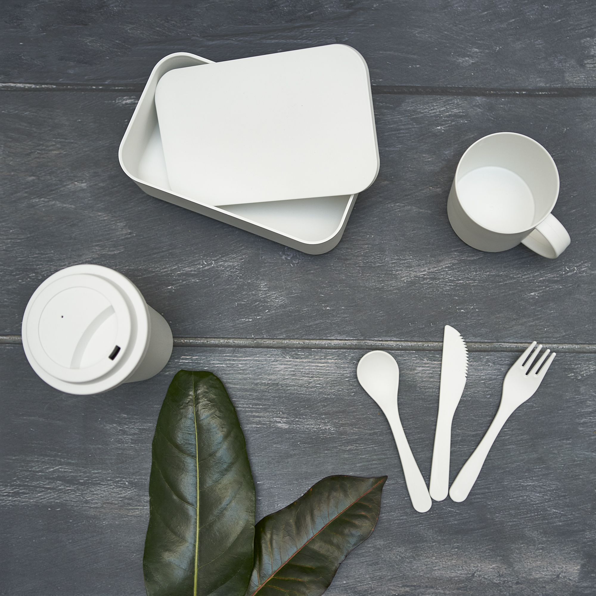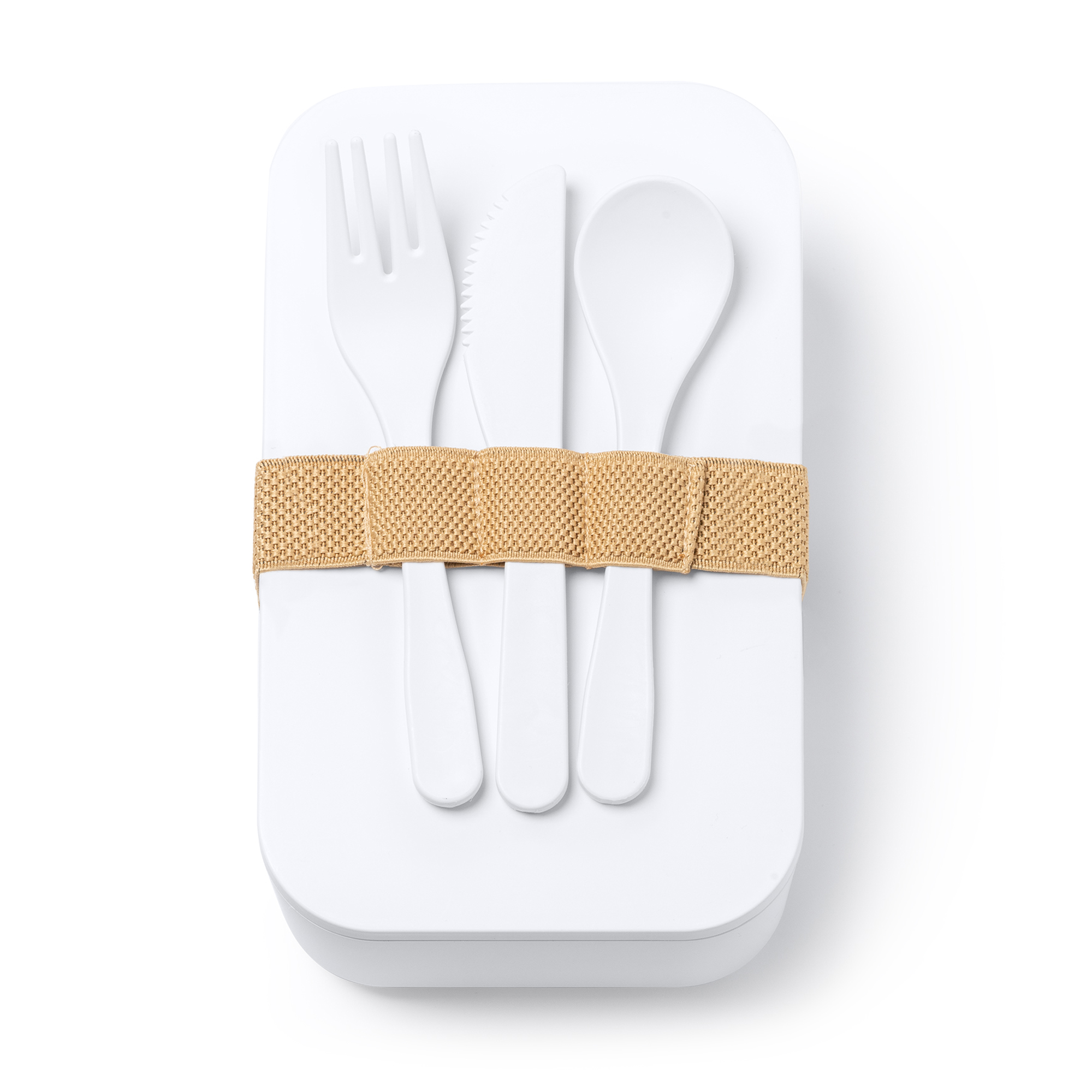 Cutie de prânz din PLA cu o curea ajustabilă din silicon. Include furculiță, lingură și cuțit. Capacitate de 1 L. Bucurați-vă oriunde de mâncare.