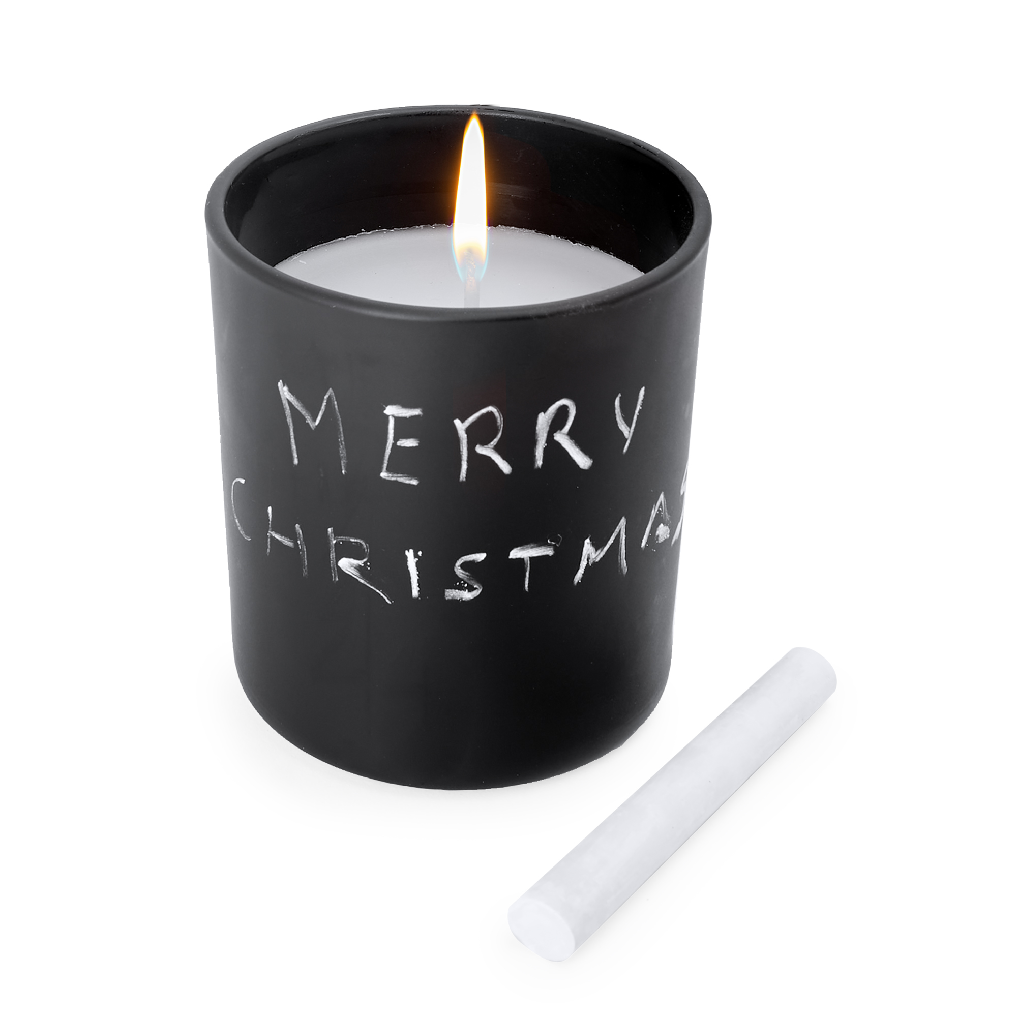 Lumânare parfumată într-un vas rotund din ceramică neagră. Cretă inclusă pentru a scrie pe vas. Lumânare și fitil alb. Aroma de vanilie.