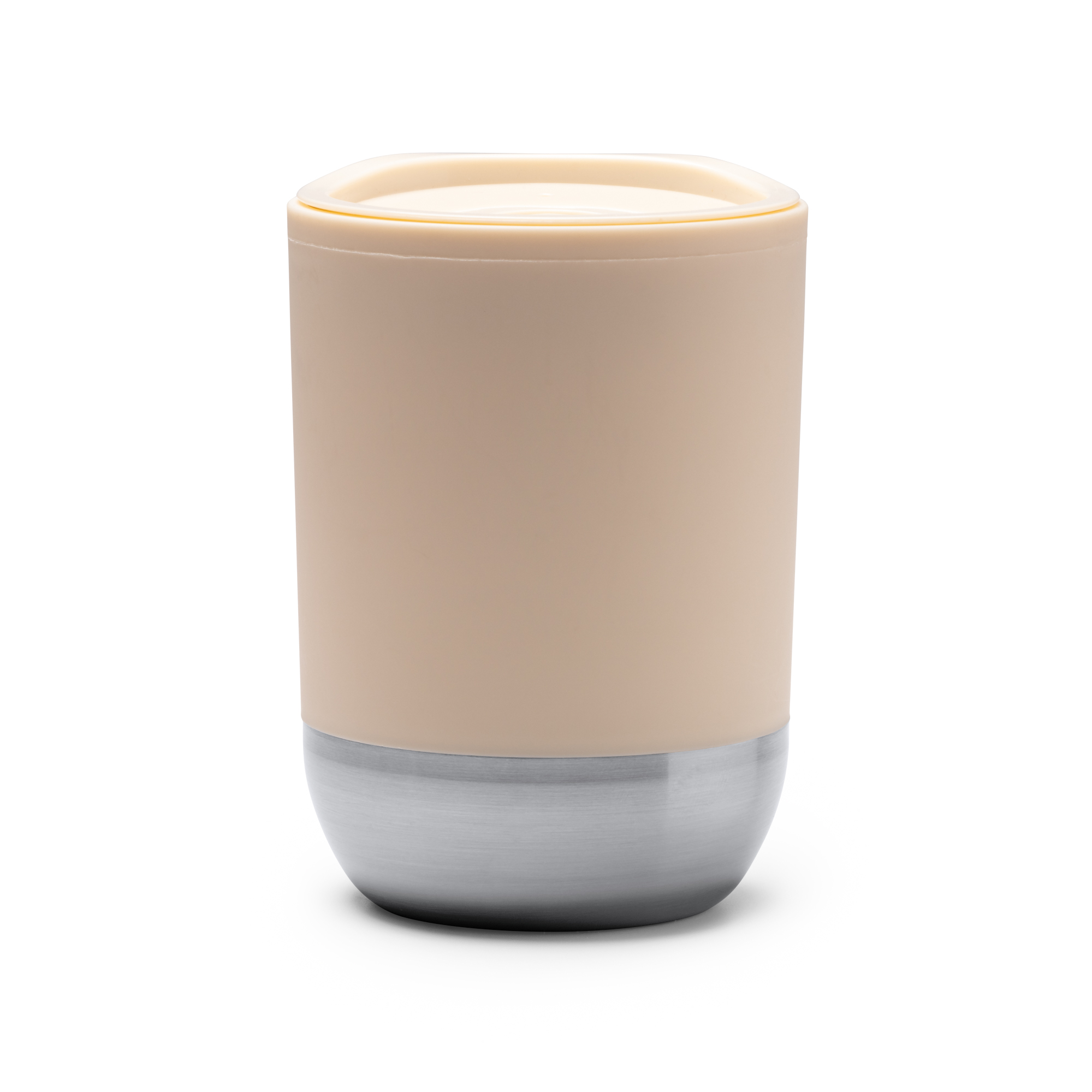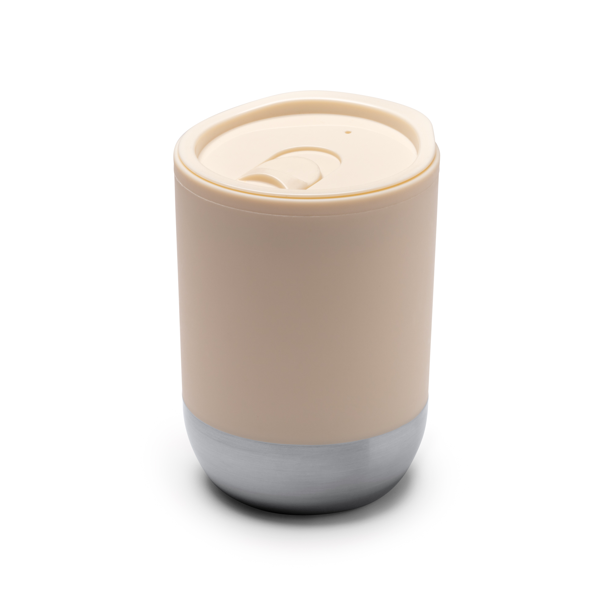Cană cu pereți dubli, cu corp din PP reciclat și bază din oțel inoxidabil 304. Include capac de măsurare. Capacitate: 290 ml. Mod de prezentare: în cutie cu model eco.