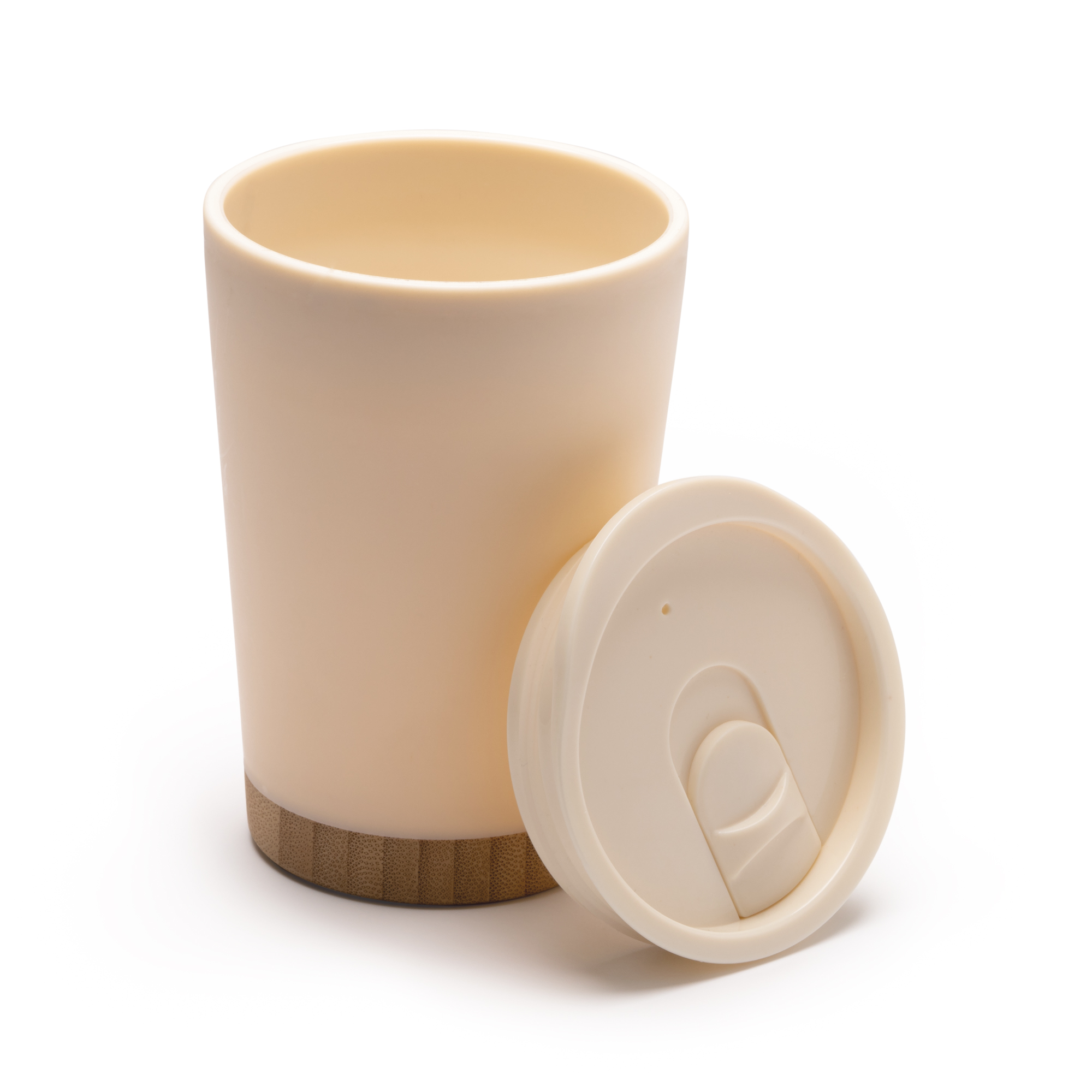 Cană cu pereți dubli, cu corp din PP reciclat și bază din bambus. Include capac de măsurare. Capacitate: 290 ml. Mod de prezentare: în cutie cu model ecologic.