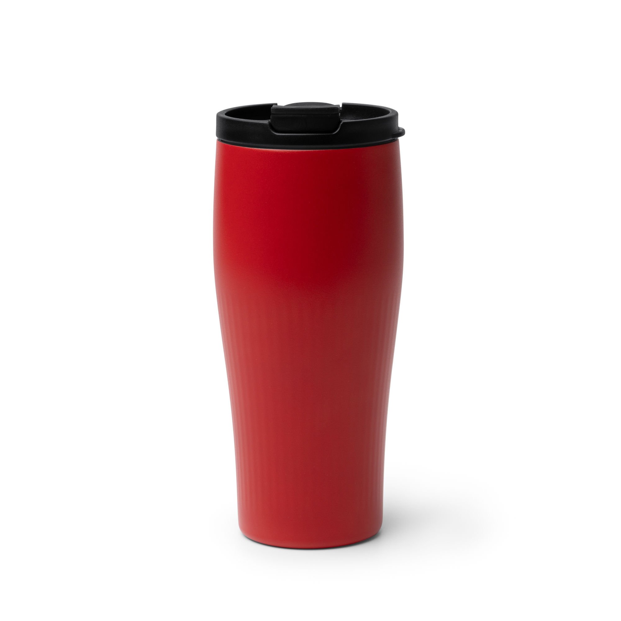 Cană termică cu design curbat, fabricată din oțel inoxidabil reciclat 304. Cu perete dublu, finisaj mat și textură cu margini pe partea de dedesubt. Capacitate: 500 ml. Capac cu filet și deschidere rabatabilă cu duză neagră.
