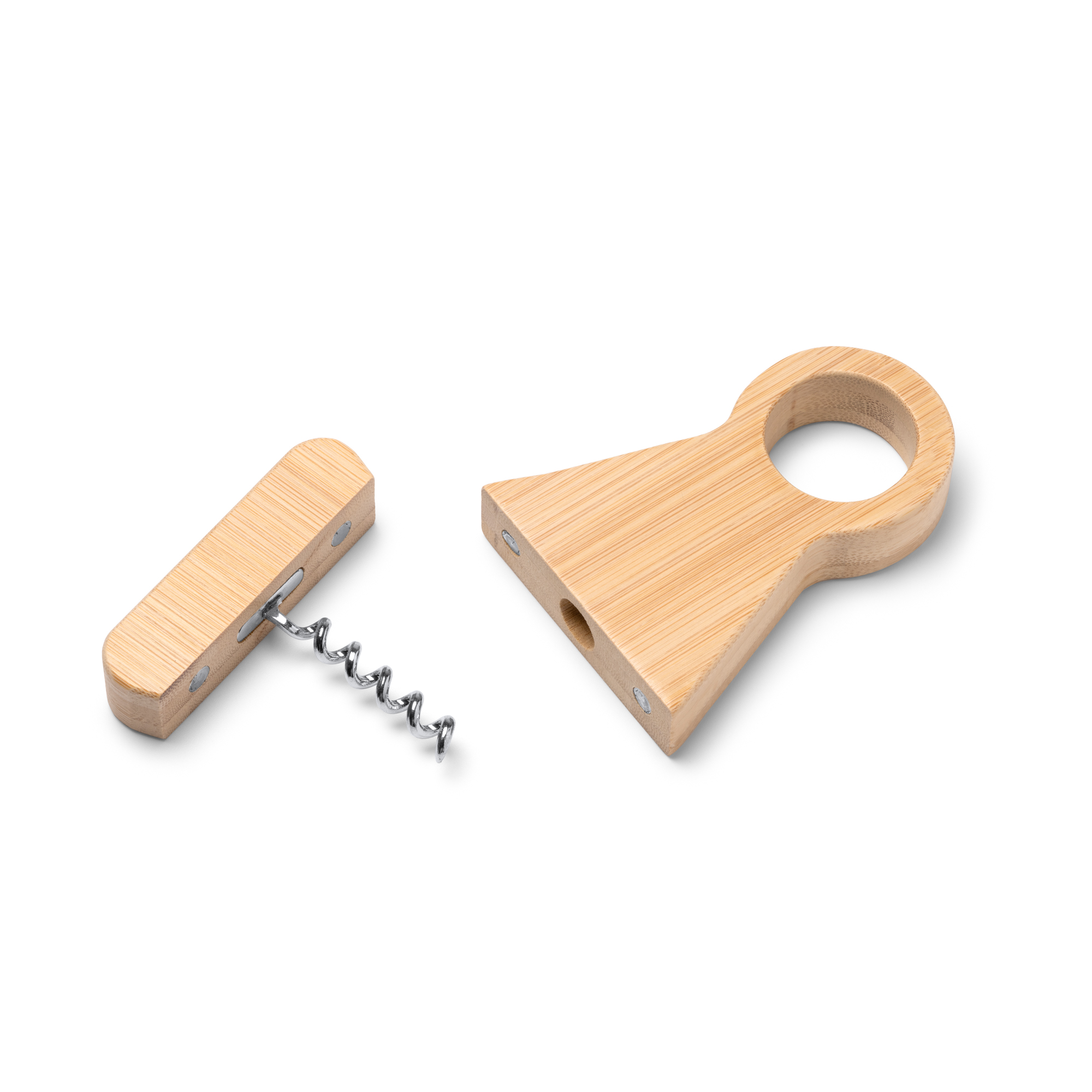 Tirbușon fabricat din bambus cu suport elegant pentru sticle, care combină funcționalitatea și estetica naturală. Ideal pentru a deschide sticlele cu stil și pentru a menține masa organizată.