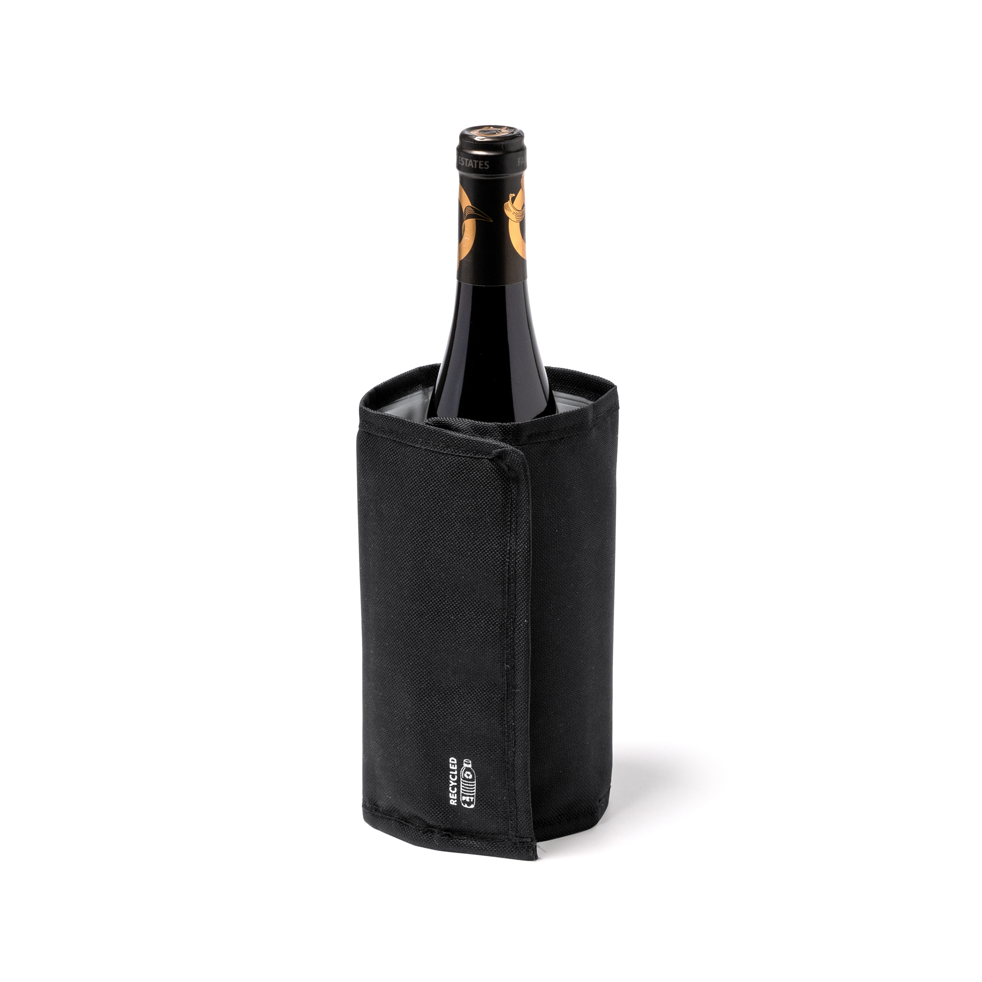 Manșon răcitor pentru sticle din polietilen tereftalat (PET), cu sistem de fixare reglabil cu velcro.