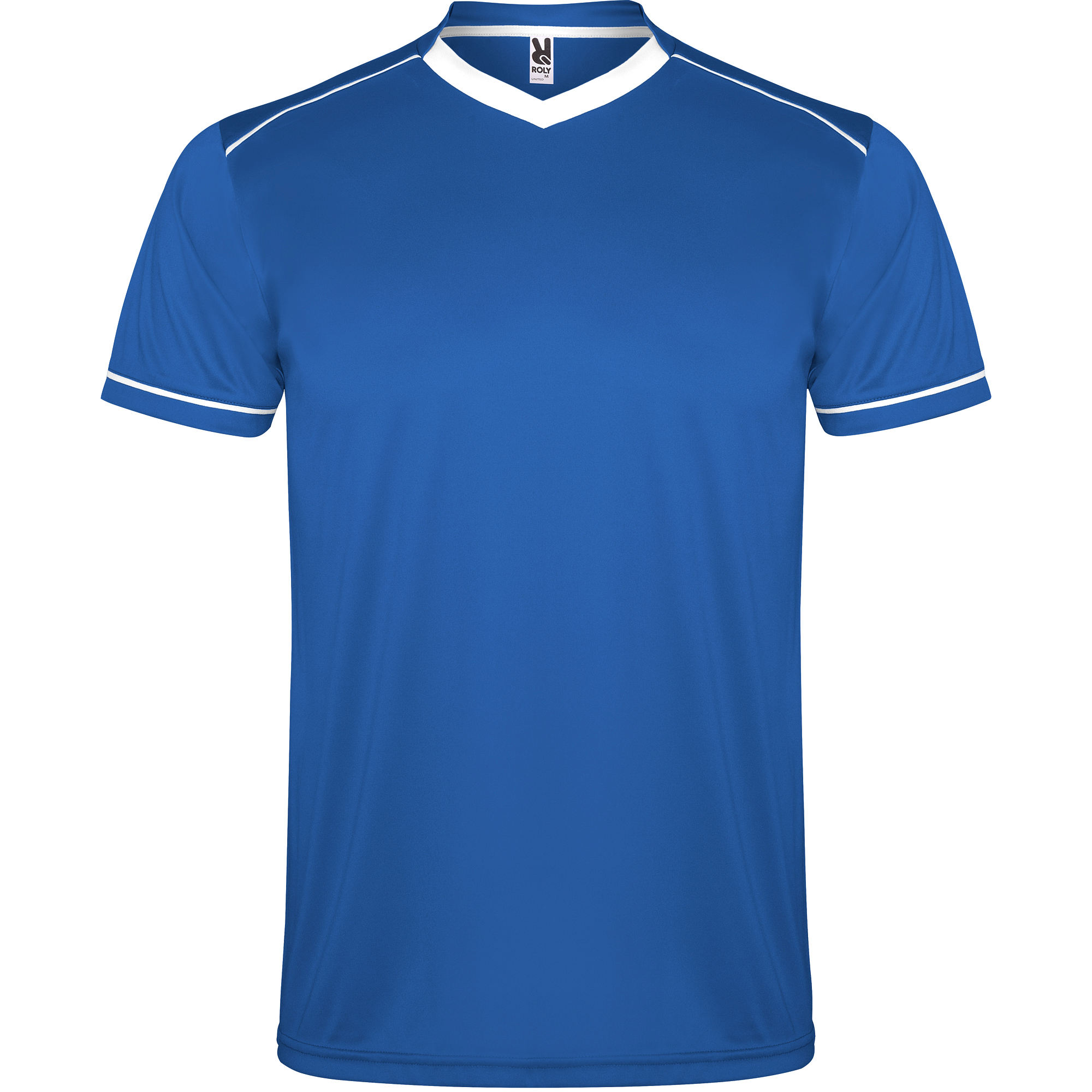Echipament sportiv unisex, compus din tricou și pantaloni respirabili. Tricou cu guler în V în două culori. Bordură contrastantă pe umeri și mâneci. Cu bandă întărită pentru acoperirea cusăturii la guler. Pantaloni cu talie elastică și șnur reglabil. Contrast de culoare. Fante laterale.