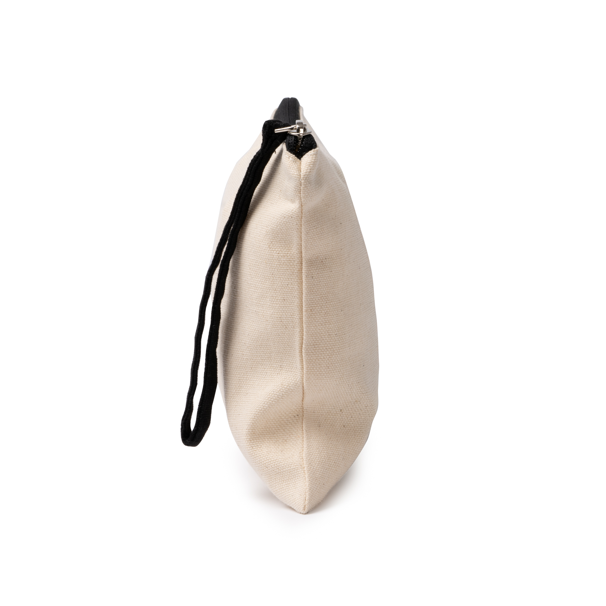 Geantă de cosmetice din bumbac 100% de 260 g/m² cu închidere cu fermoar și mâner de transport colorat.