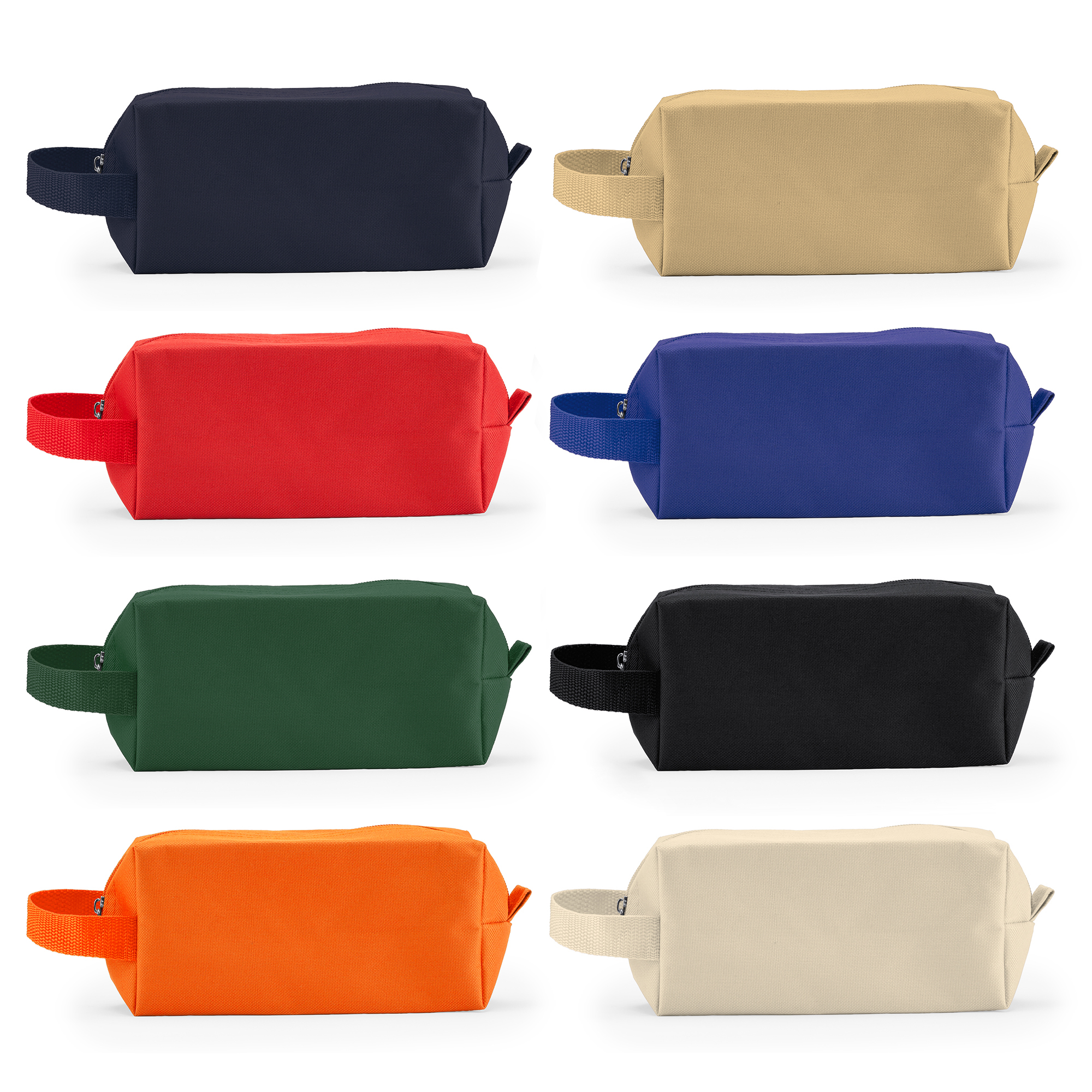 Geantă cosmetice din poliester 600D cu fermoar și mâner pentru o mai ușoară transportare.