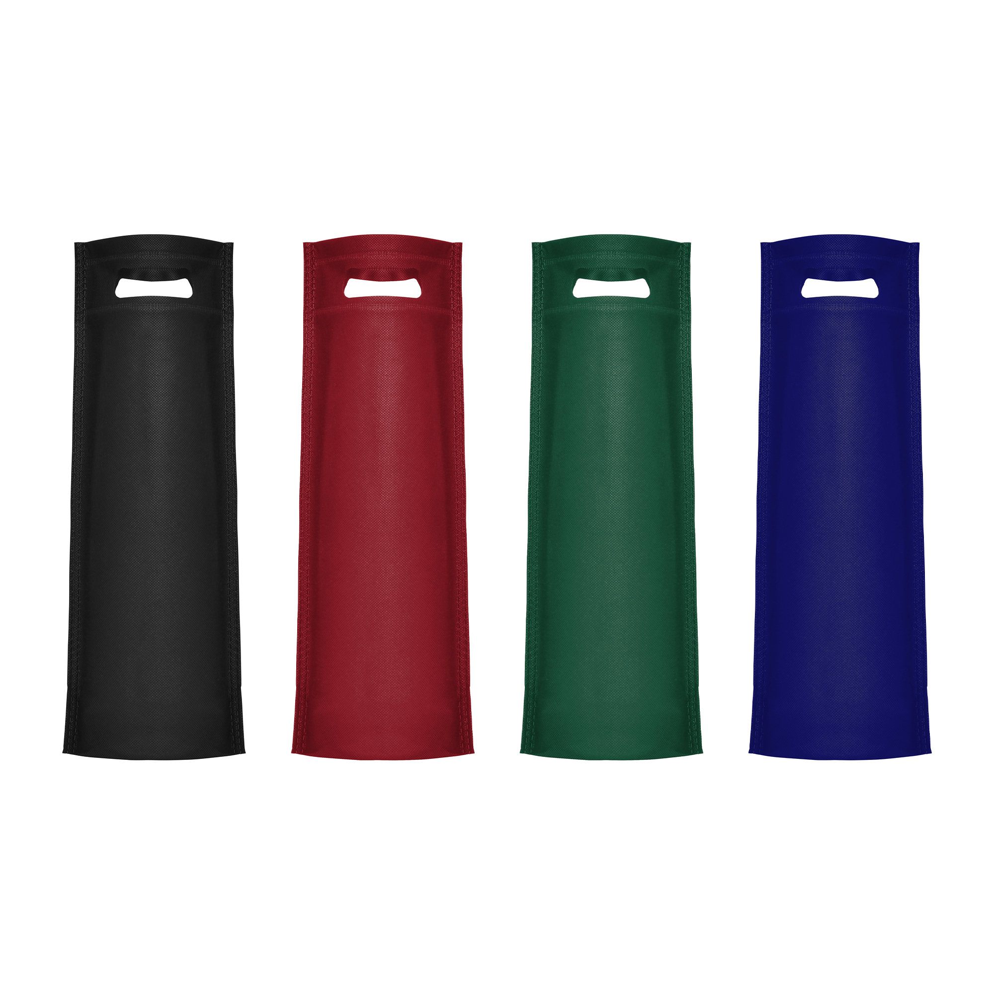 Sacoșă termolipită specială pentru sticle, cu burduf la bază, fabricată din material non woven ( nețesut) cu mânere perforate.