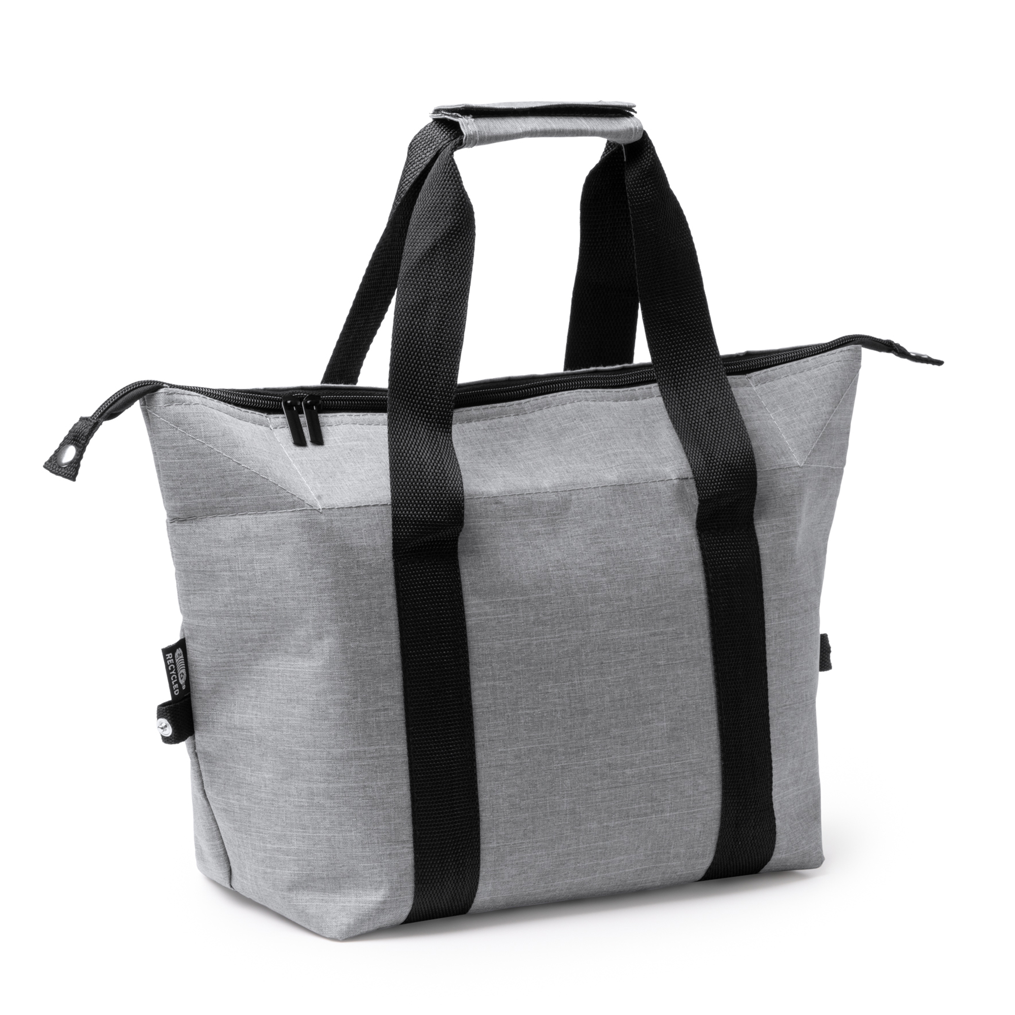 Geantă frigorifică extensibilă din poliester RPET, ușor de pliat. Compartiment principal cu căptușeală izotermică.