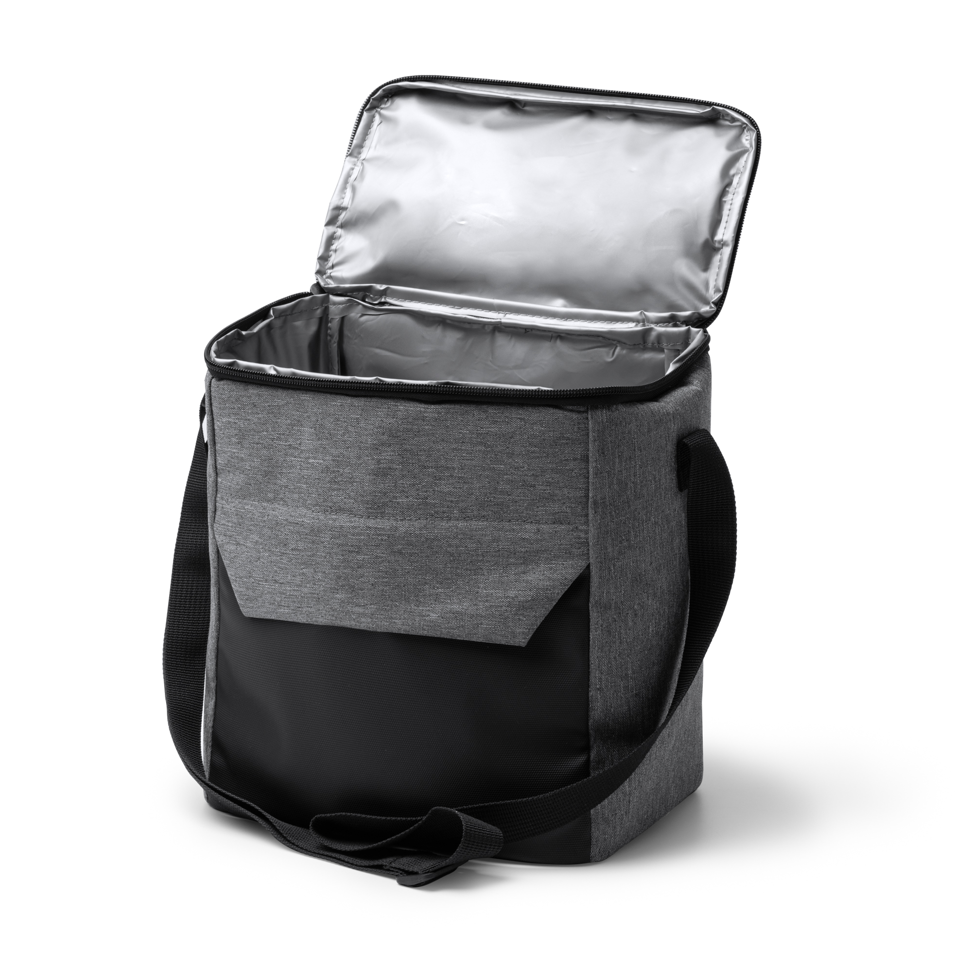 Răcitor din piele PU și RPET 300D cu interior izoterm. Compartiment principal mare și buzunar exterior cu închidere cu fermoar. Mâner cu întărire și curea de transport reglabilă.
