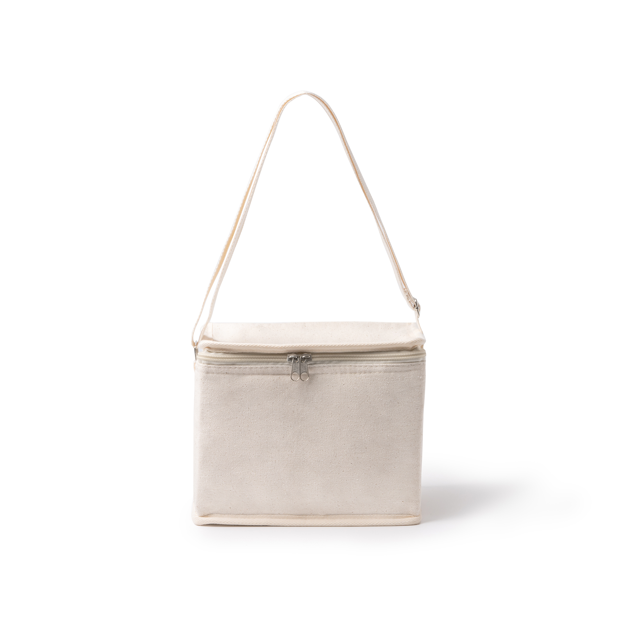 Geantă frigorifică din bumbac cu buzunar frontal. Buzunar principal cu căptușeală izotermică. Mâner de transport inclus.