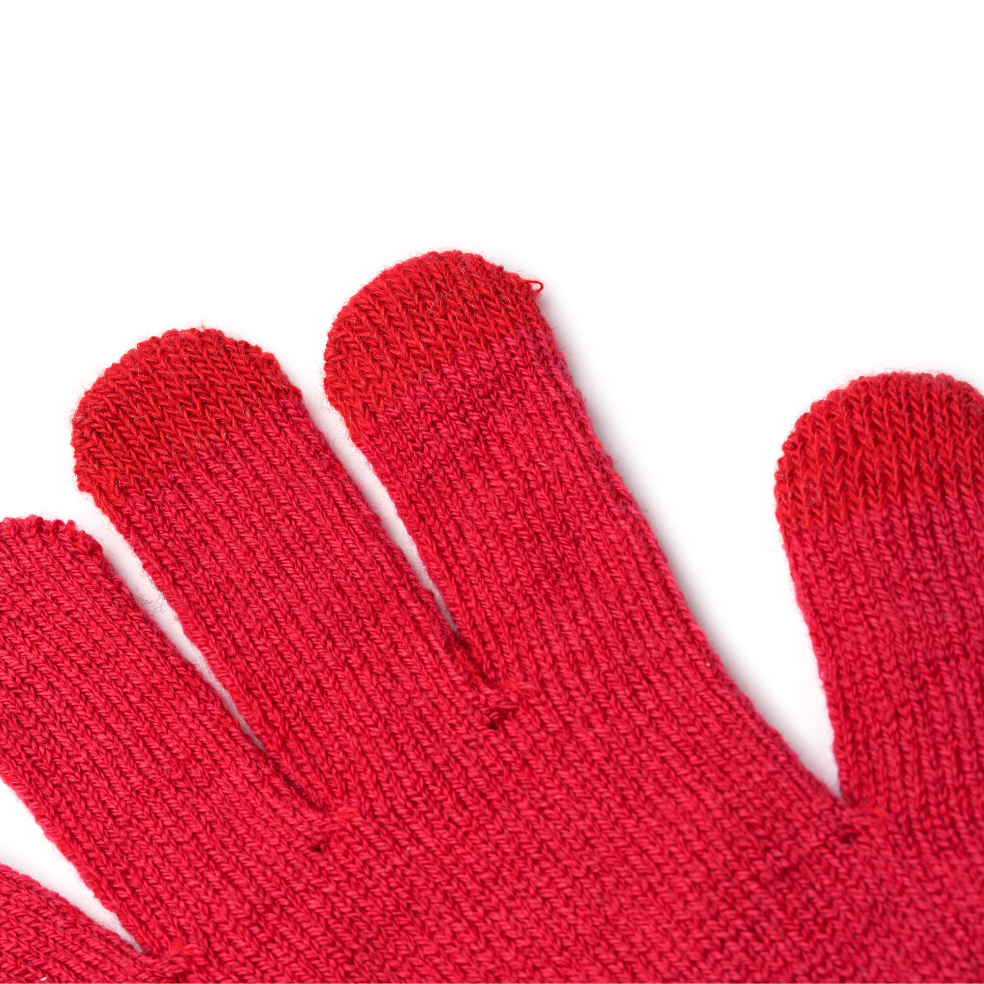 Mănuși din poliester reciclat, cu trei degete tactile – mijlociu, arătător și degetul mare. Zonă tactilă colorată asortată cu mănușa.