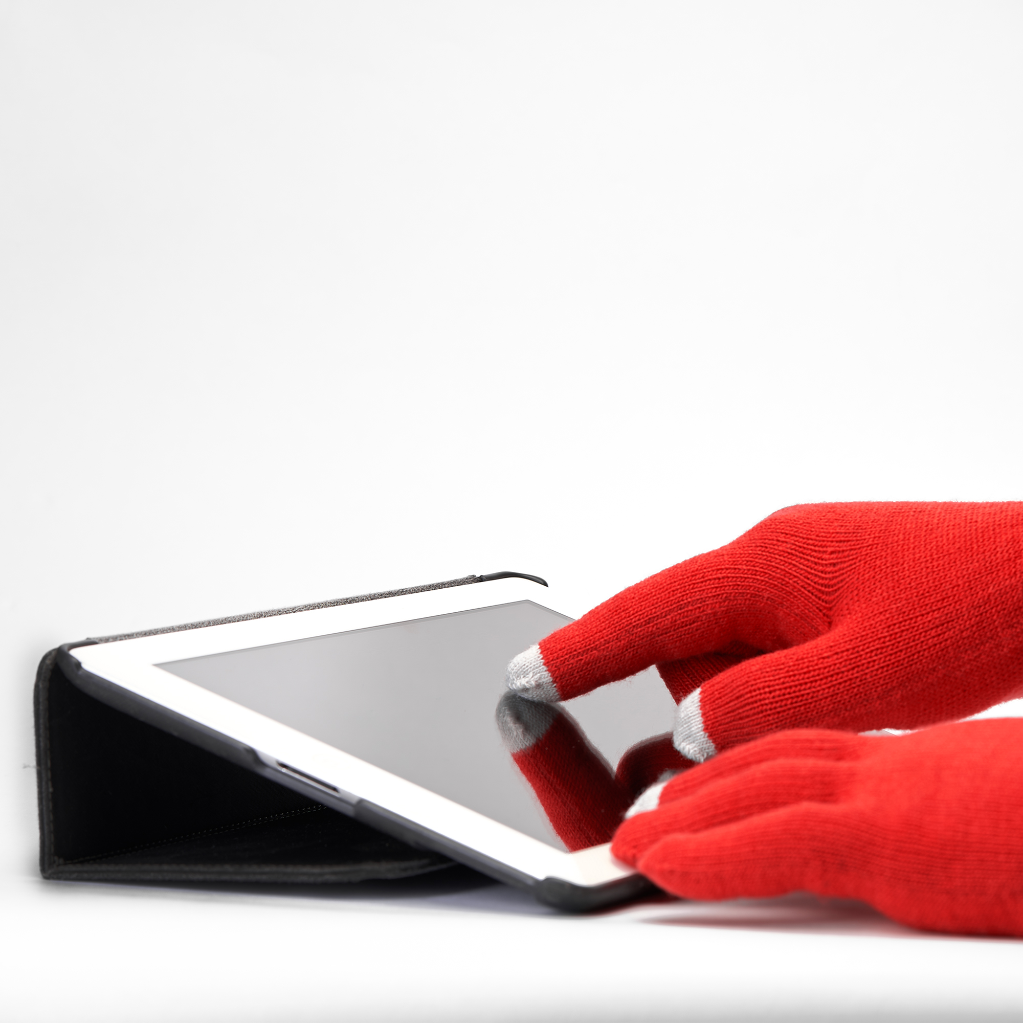 Mănuși cu degetul mare, arătătorul și cel mijlociu tactile. Zona de atingere în culoare diferită față de restul mănușii.