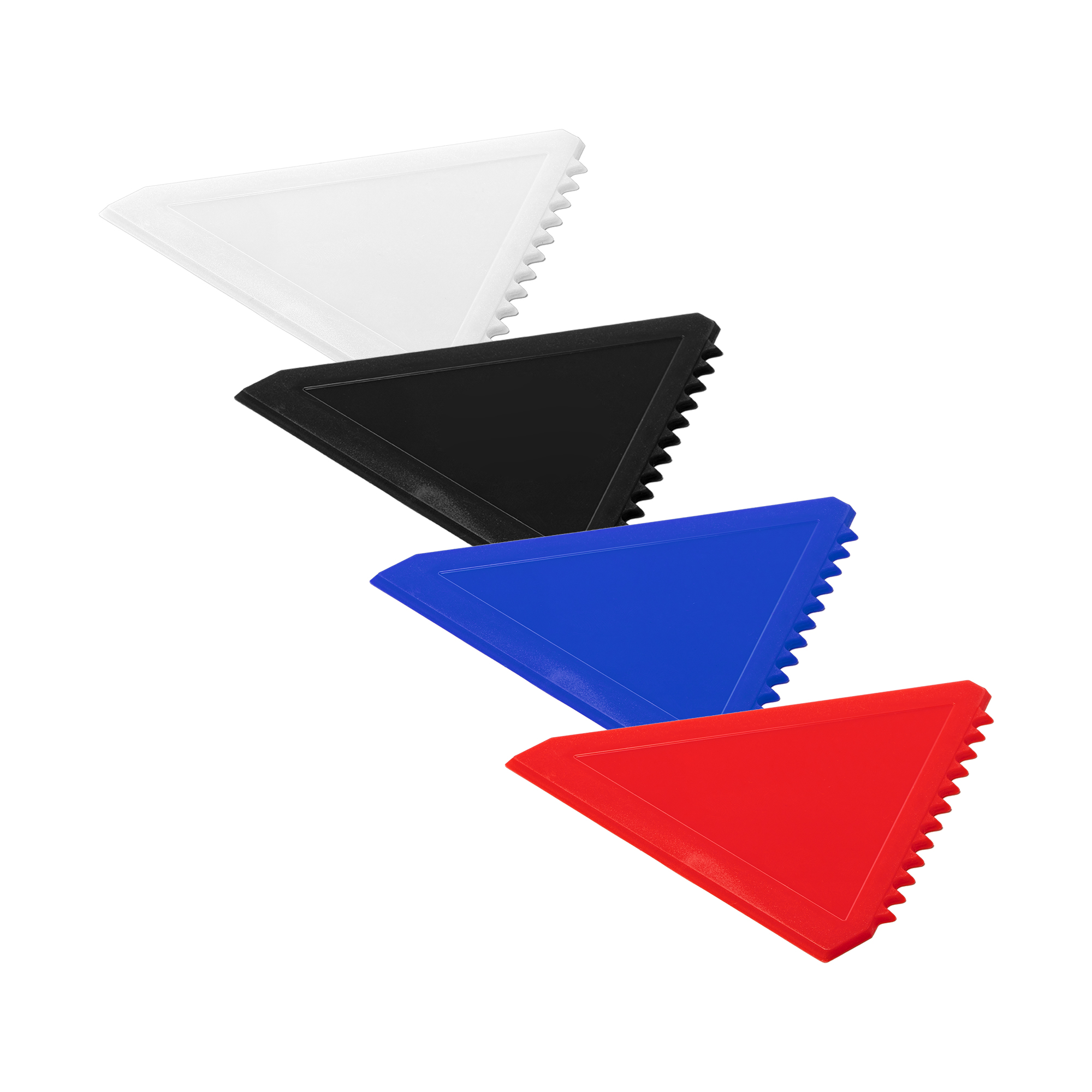 Racletă pentru gheață cu design compact. O margine zimțată și alte două drepte.