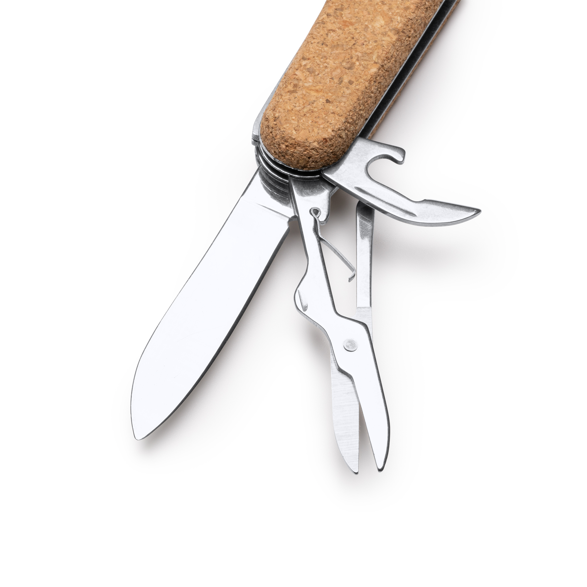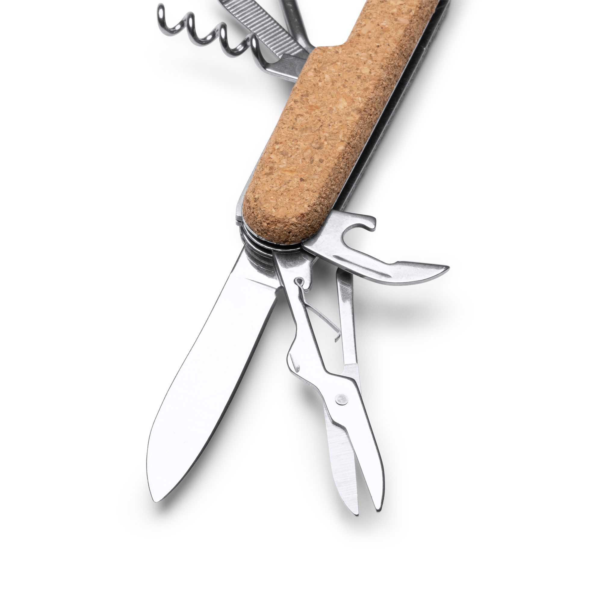 Această unealtă multifuncțională include un cuțit ascuțit din oțel inoxidabil pentru tăiere de precizie, foarfece pentru lucrări de precizie, o șurubelniță pentru strângerea sau slăbirea șuruburilor, un deschizător de conserve pentru deschiderea cutiilor și un tirbușon pentru a vă bucura de băuturile preferate și alte caracteristici suplimentare. Unealta multifuncțională include, de asemenea, o curea de transport din imitație de piele, permițându-vă să o purtați confortabil cu dumneavoastră.