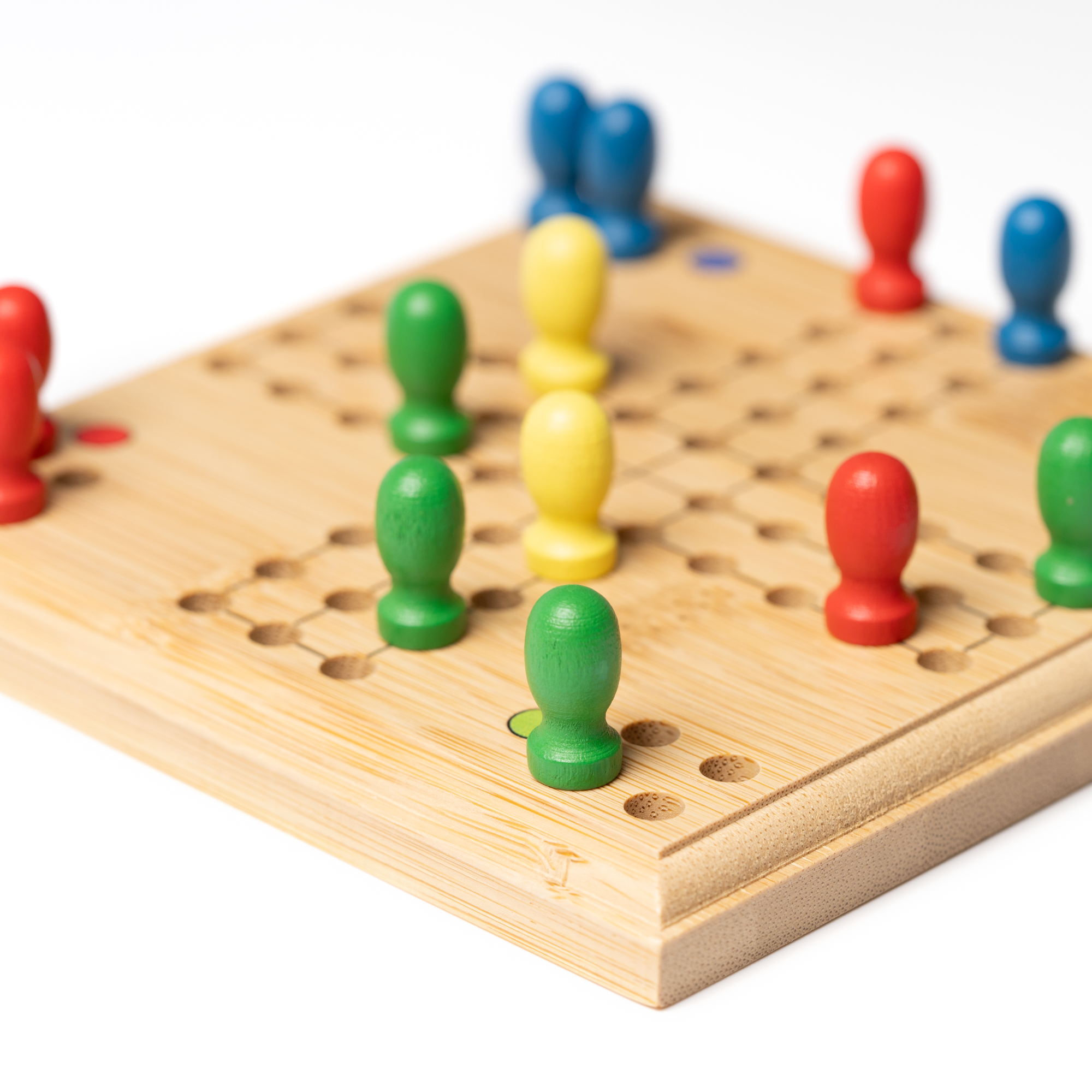 Set Pachisi din bambus. Include tablă, un zar și 16 plăcuțe în 4 culori. Include husă din bumbac. Mod de prezentare: în cutie cu model ecologic.