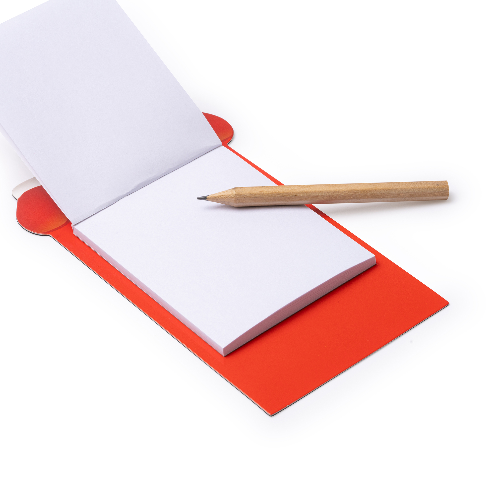Magnet de frigider cu Moș Crăciun. Include 45 de foi pentru notițe din hârtie albă simplă și creion. Magnet negru.