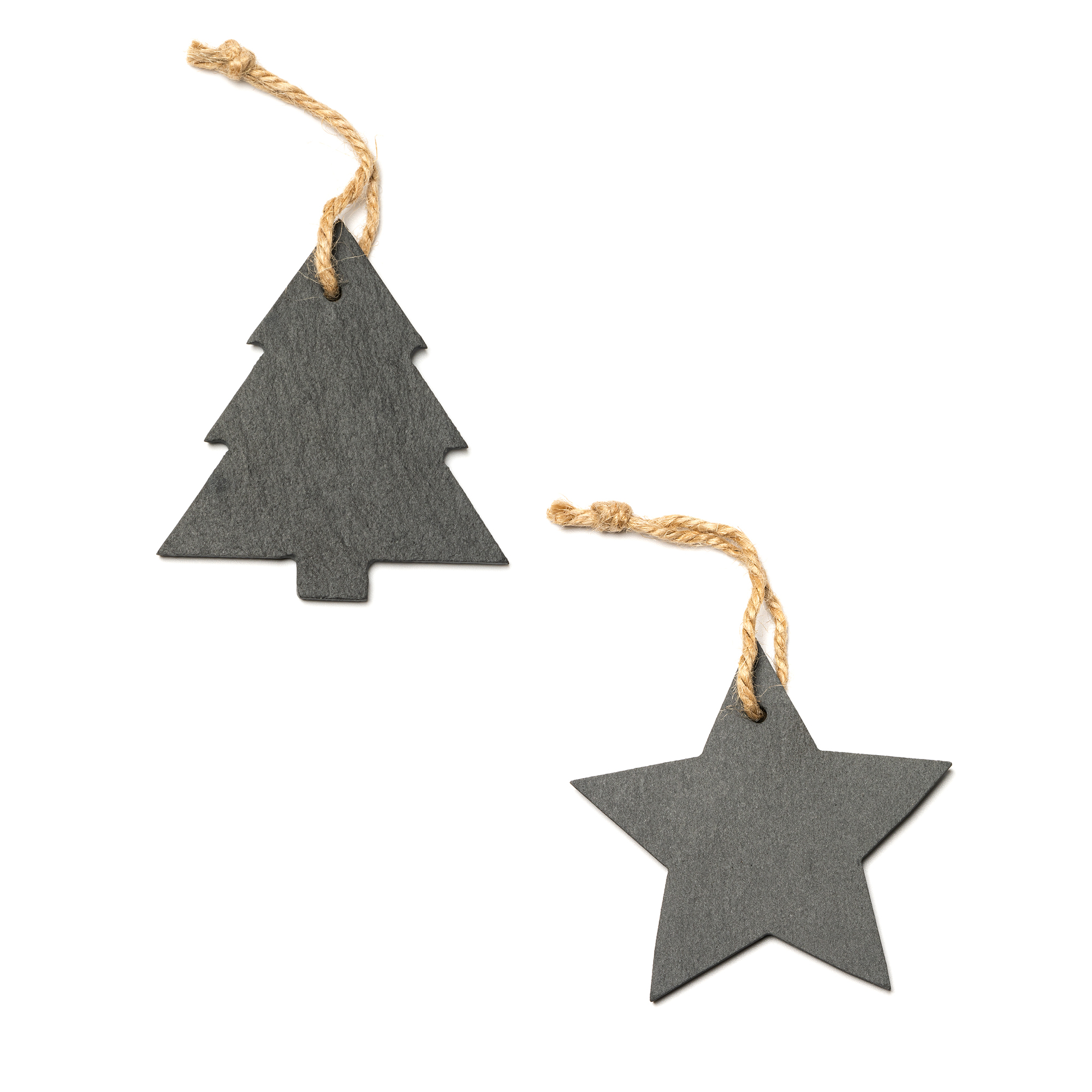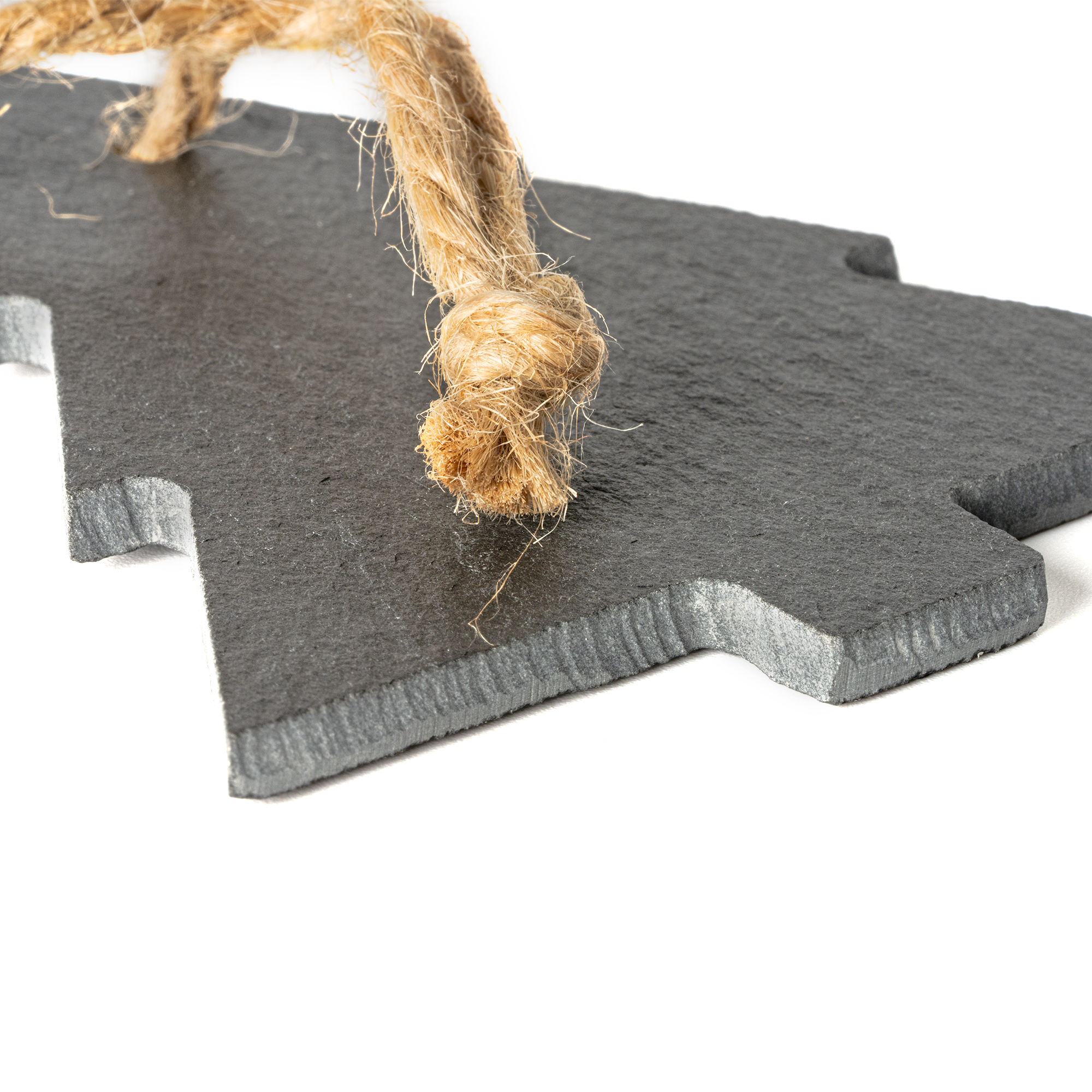 Ornament din ardezie pentru Crăciun cu design dublu. Curea de agățat inclusă.