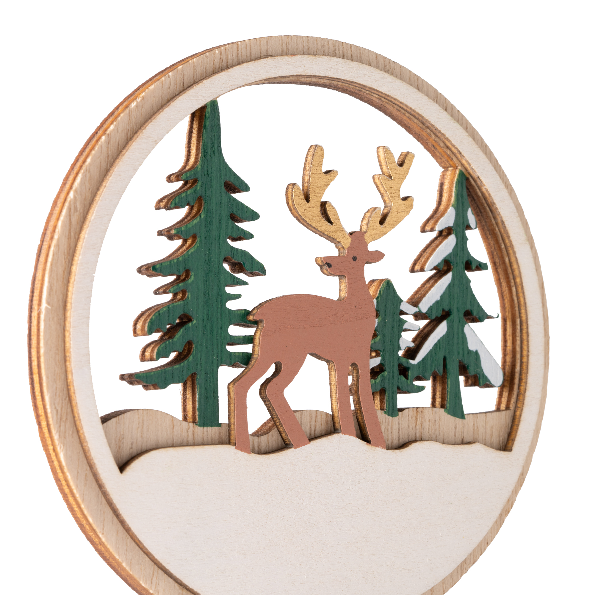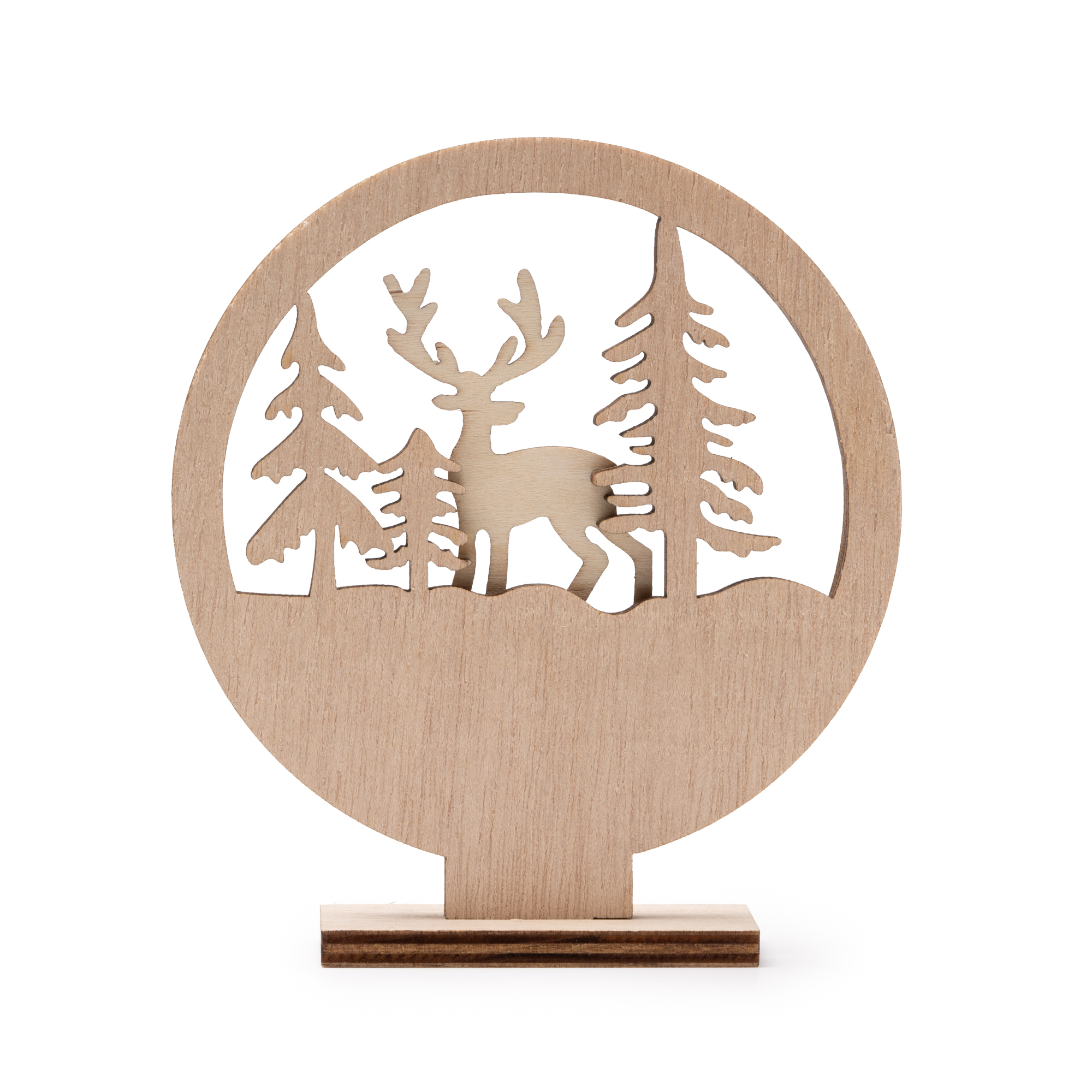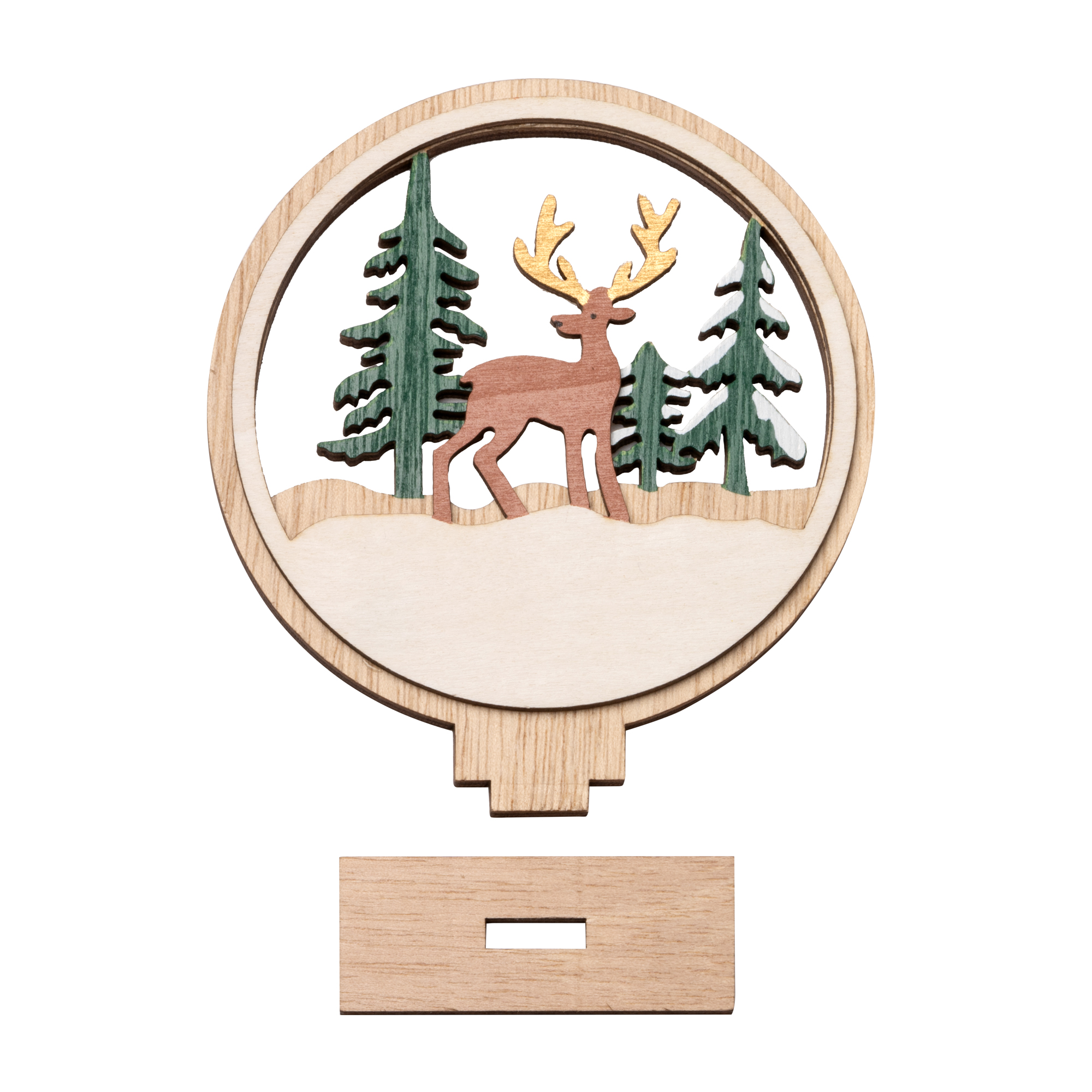 Ornament de Crăciun din lemn cu bază detașabilă, ideal pentru decorațiuni fermecătoare de sărbători.