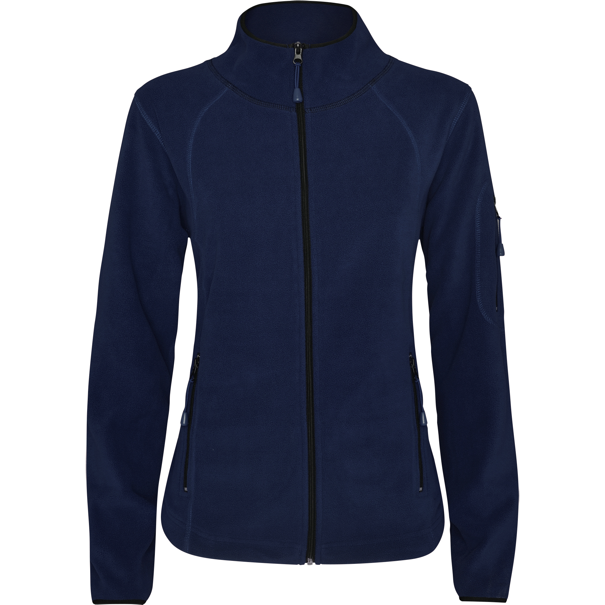 Hanorac din polar ideală pentru sporturile în aer liber, cu guler înalt și mânecă lungă cu manșetă elastică în contrast de culoare. Fermoar central și buzunar pe mâneca stângă cu fermoar, ambele în contrast de culoare. Cusături laterale și pe piept. Cotiere din același material.