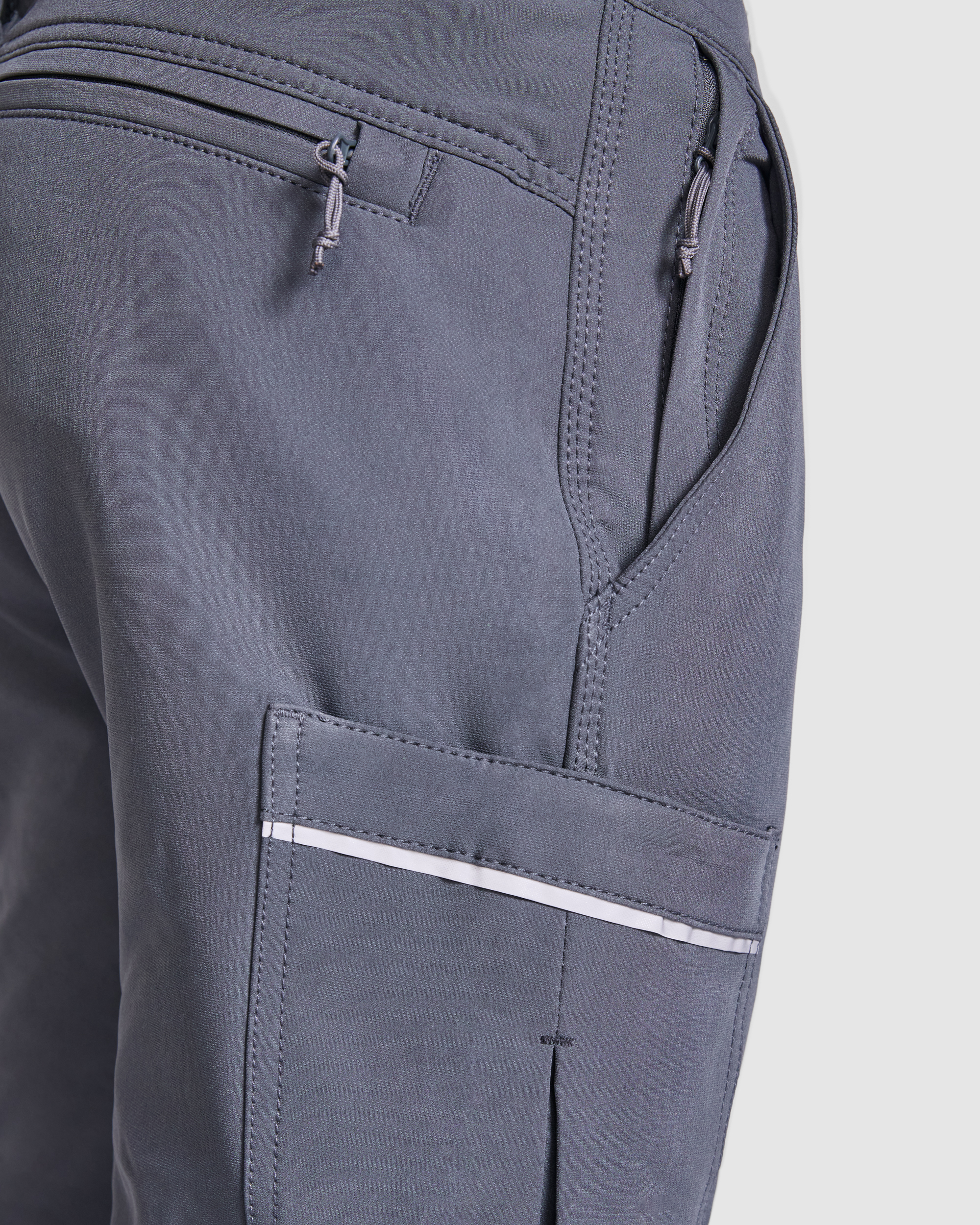 · Buzunar cargo cu clapetă și închidere cu Velcro pe piciorul stâng.