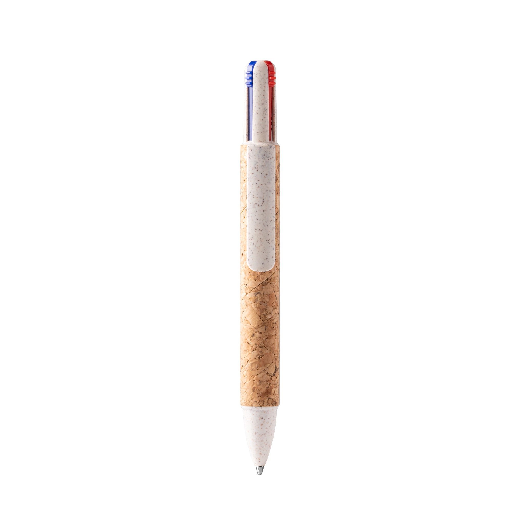 Pix retractabil cu 3 tipuri de pastă. Structură din plută și fibră de grâu. Pastă albastră, roșie și neagră.