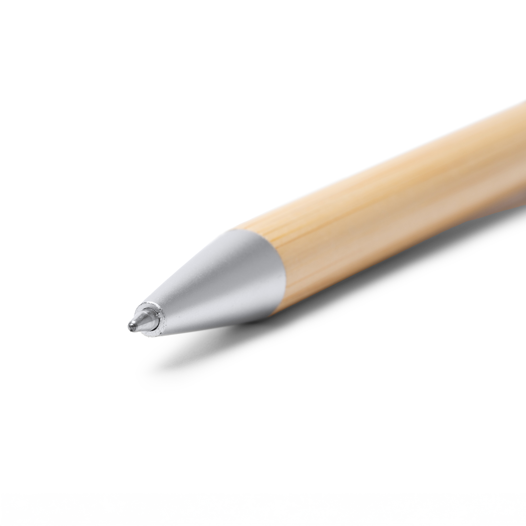 Pix cu bilă cu rotiță antistres. Corp din bambus și indicator tactil cu detalii din finisaj metalic mat. Rezervă de cerneală Jumbo albastră.