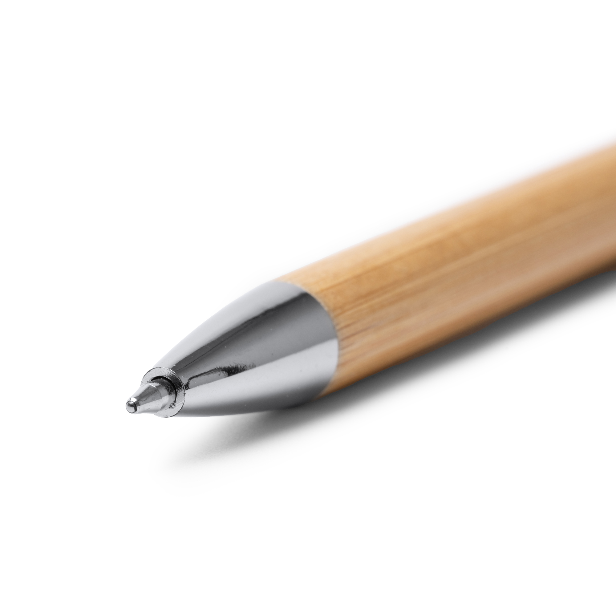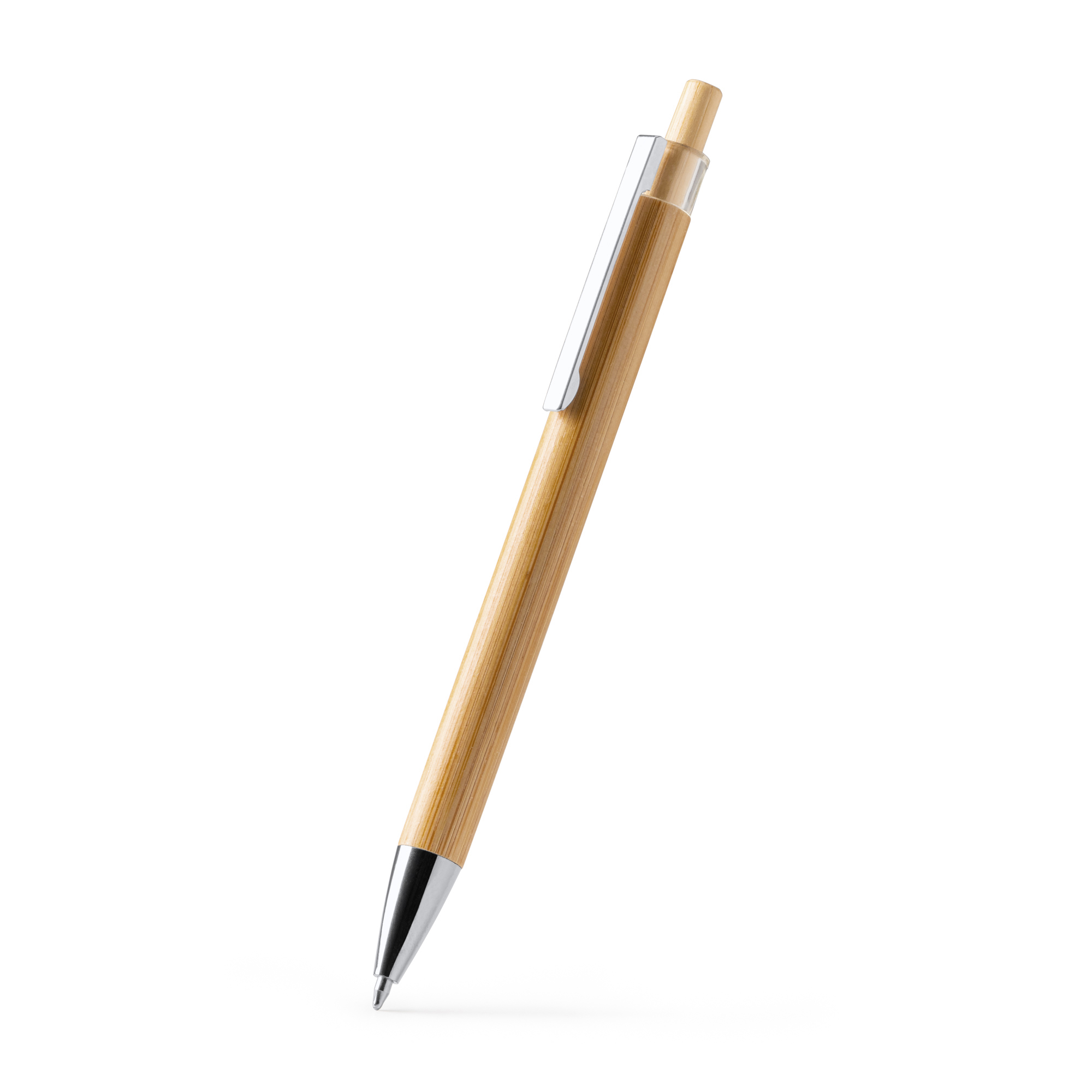 Pix cu bilă cu corp din bambus și buton, clemă metalică și detalii cromate. Cerneală albastră.