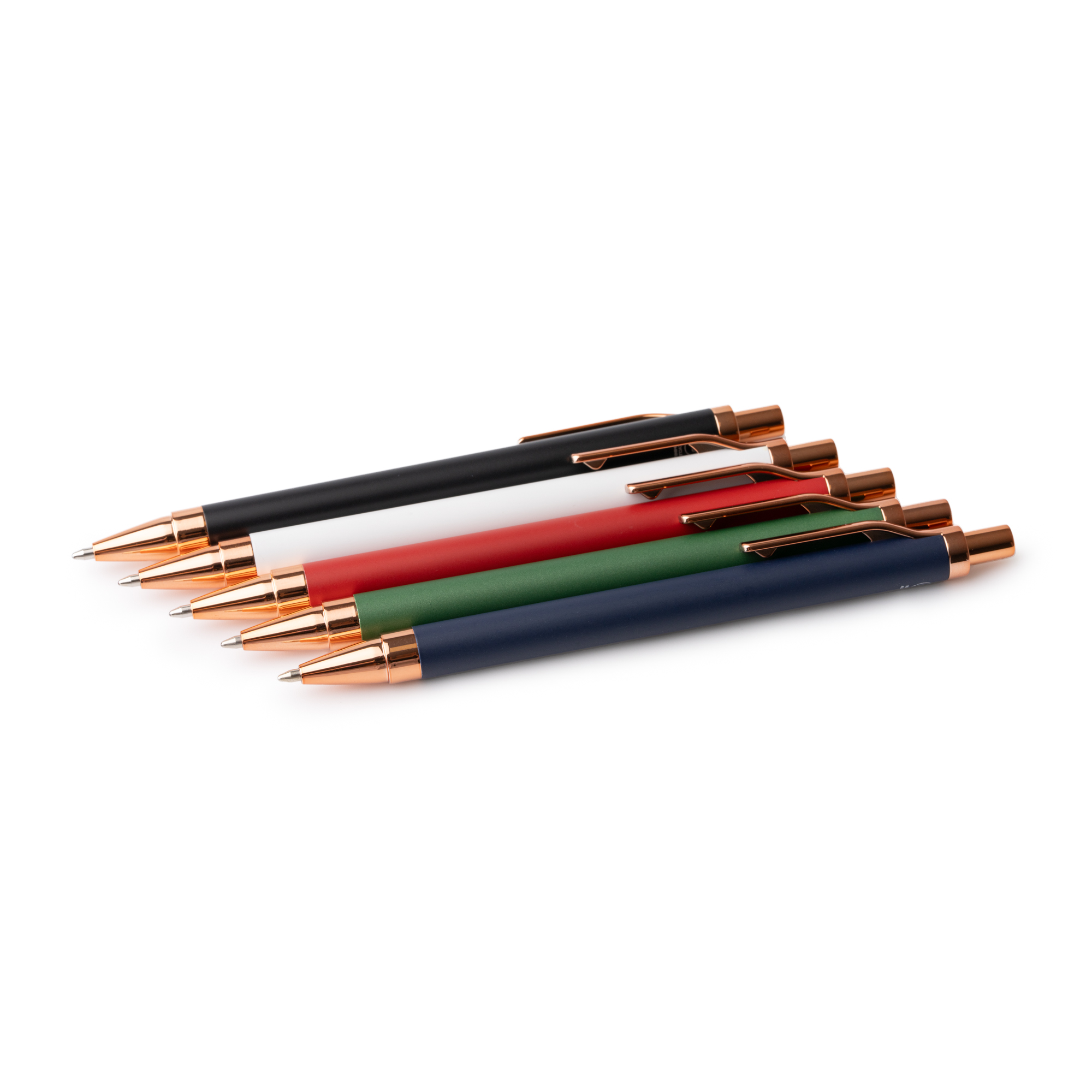Pix din aluminiu reciclat finisat în culoare solidă mată cu detalii din cupru. Dispune de o încărcare jumbo cu cerneală albastră, oferind o scriere fluidă și o utilizare mai îndelungată.