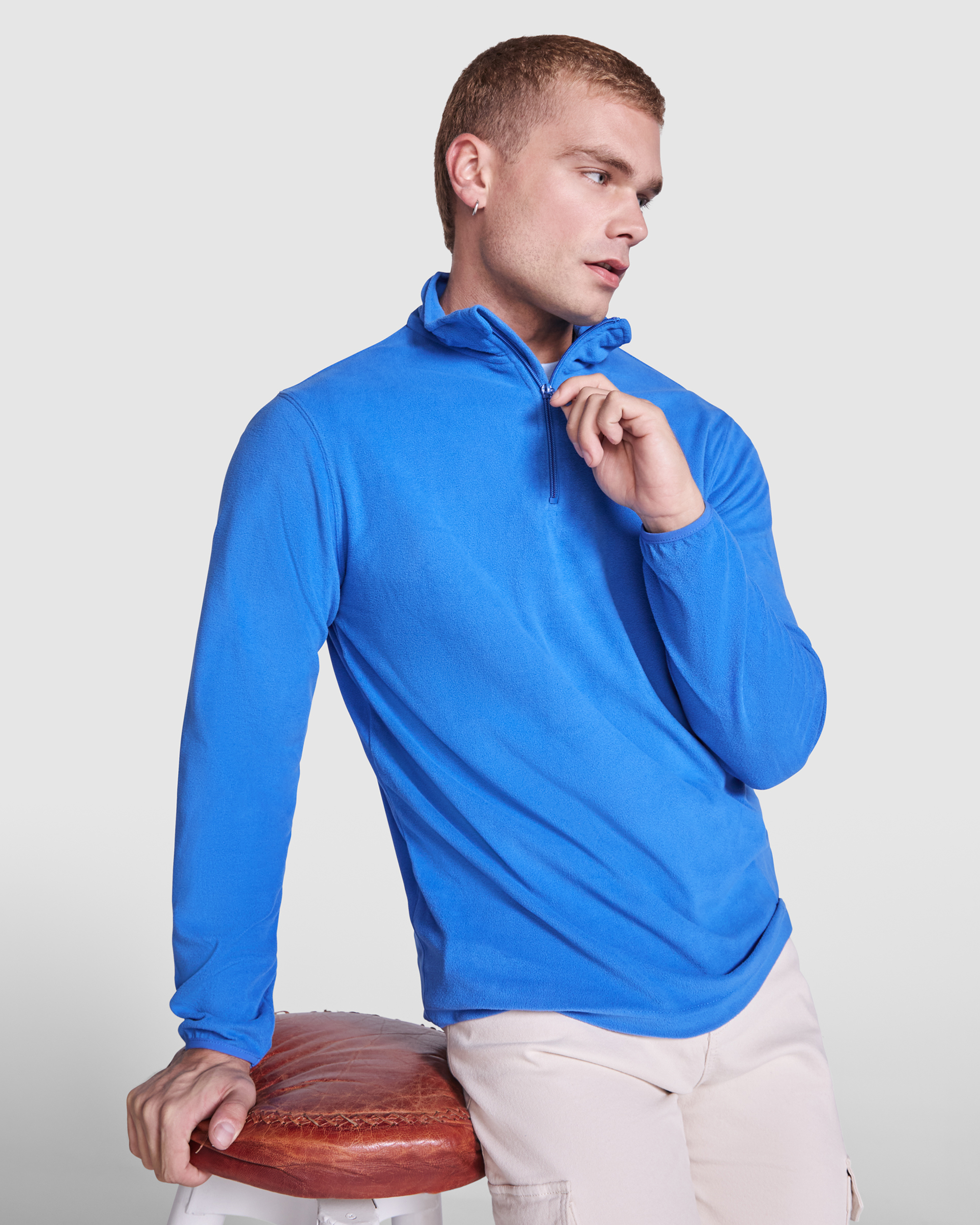 Hanorac din microfleece cu fermoar pe jumătate, cu guler înalt. Manșete finisate cu margini elastice. Apărătoare bărbie din același material.