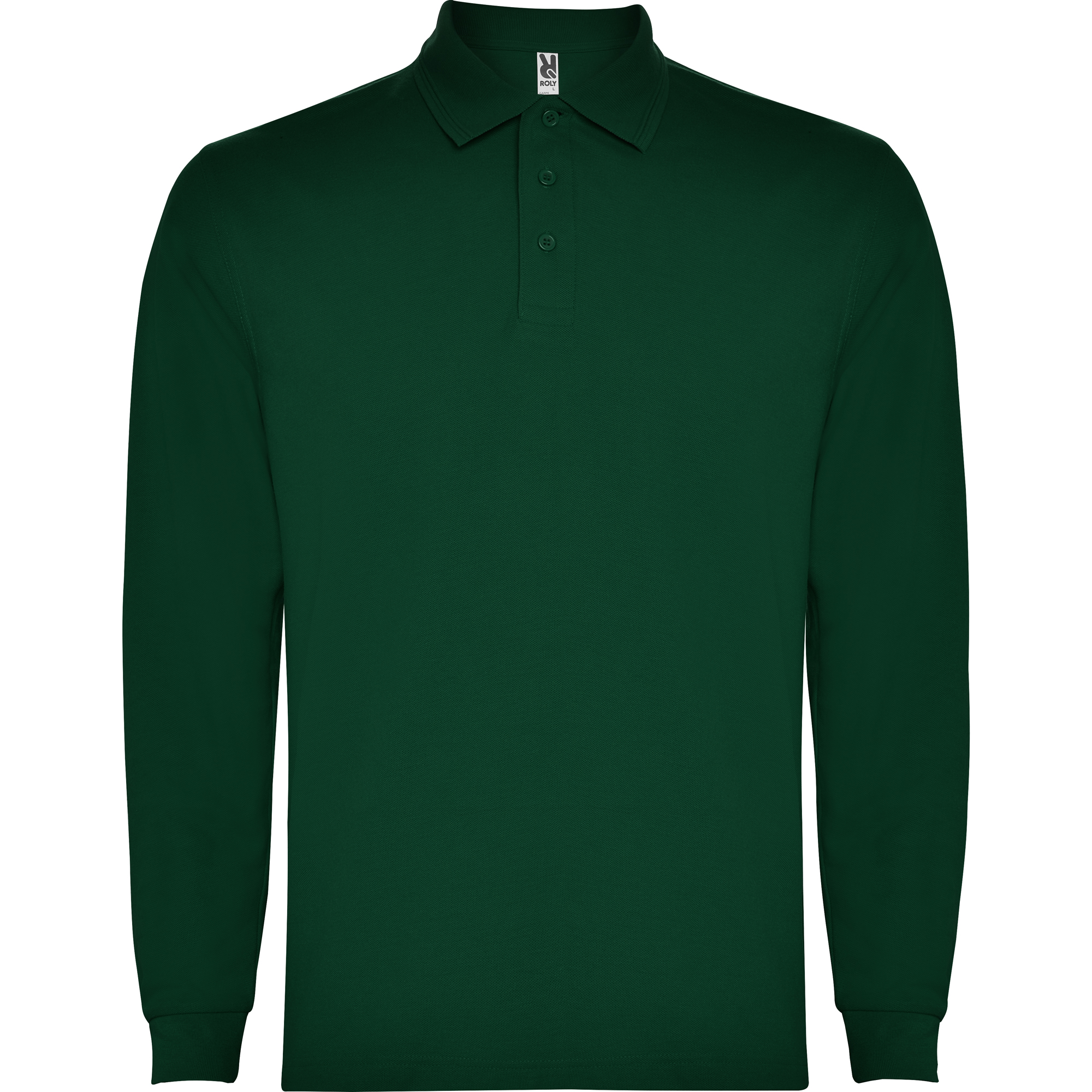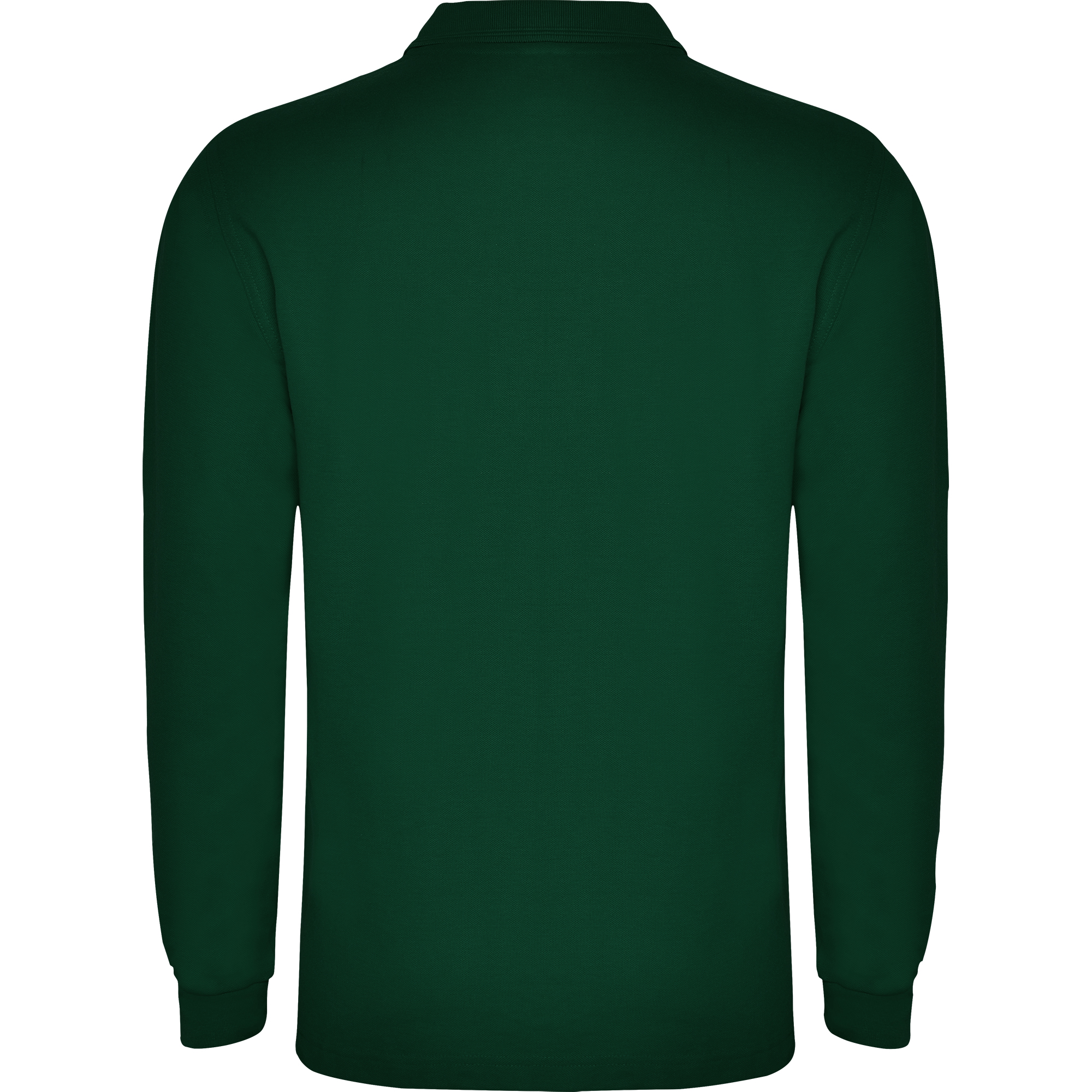 Tricou polo cu mânecă lungă. Cusătură piqué. Guler și manșete cu nervuri 1×1. Bandă de închidere cu 3 nasturi. Cu bandă asortată întărită pentru acoperirea cusăturii la guler. Deschizături laterale la tiv. Buzunar, opțional.