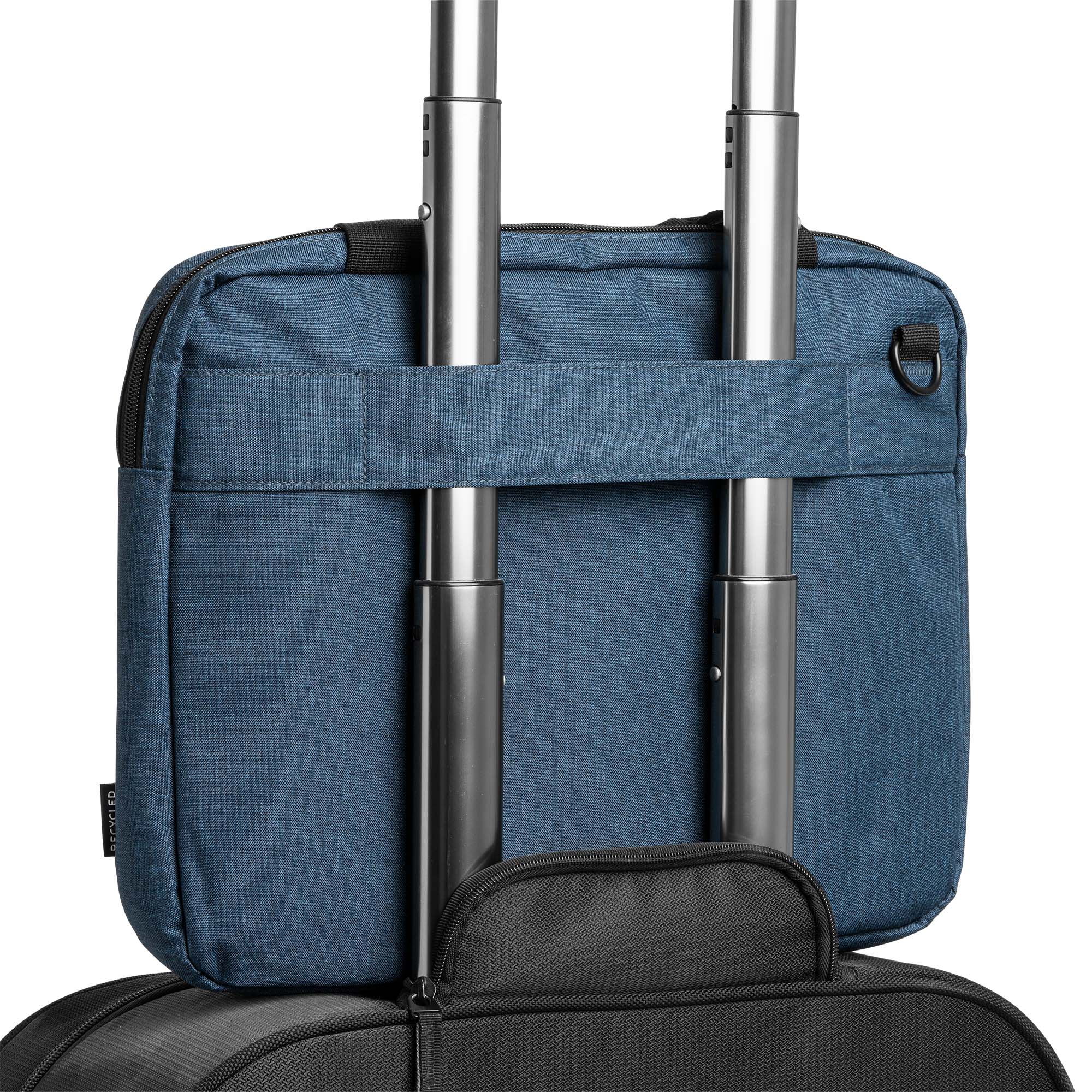 Husă căptușită pentru laptop, fabricată din poliester reciclat 600D polietilen tereftalat (PET), cu finisaj din țesătură. Două compartimente cu fermoar impermeabil. Mânere asortate și curea de umăr reglabilă. Curea troller inclusă.