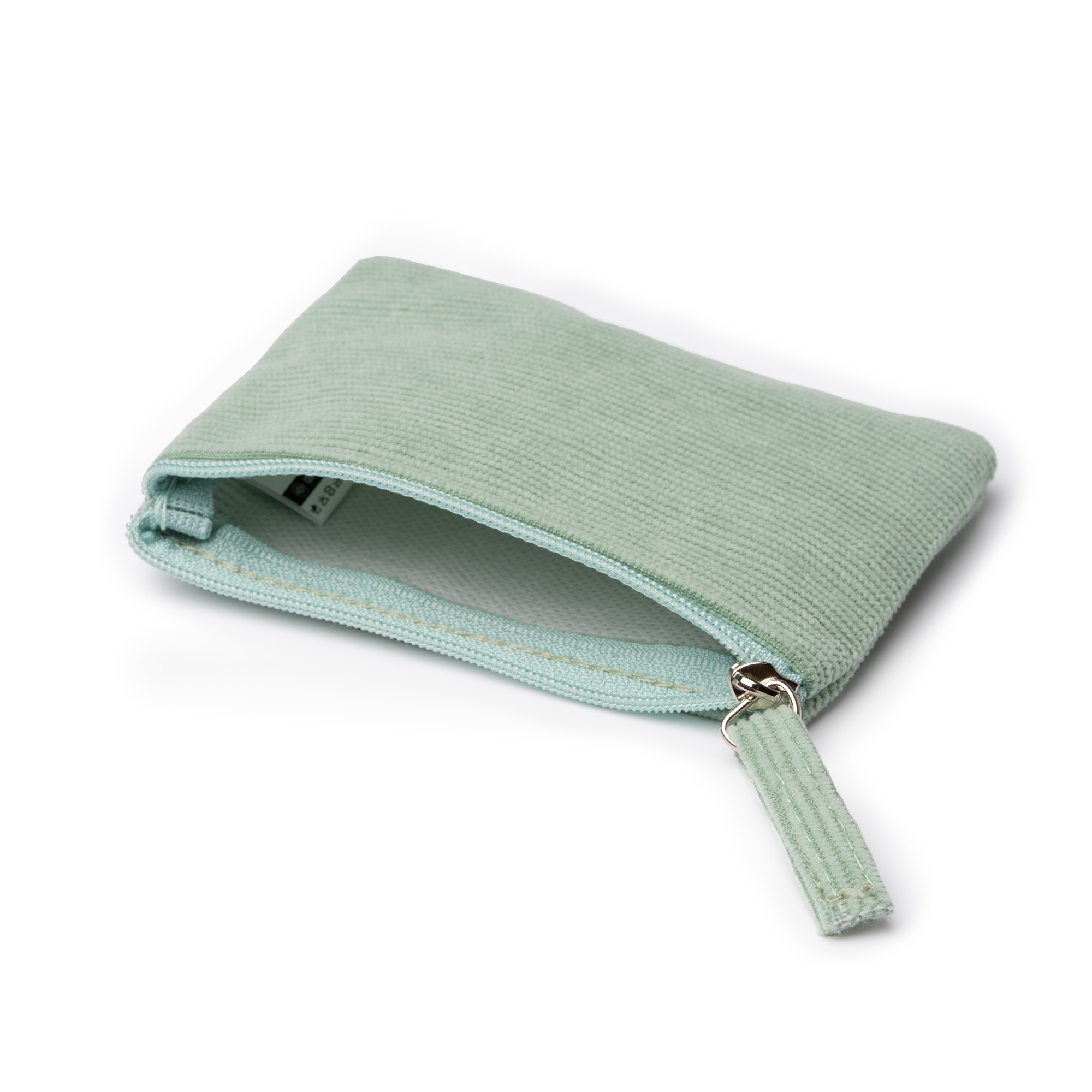 Geantă din material de catifea cu închidere cu fermoar asortat.