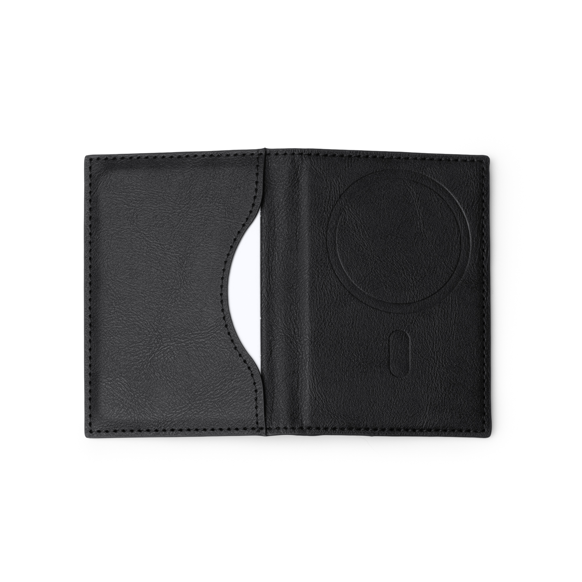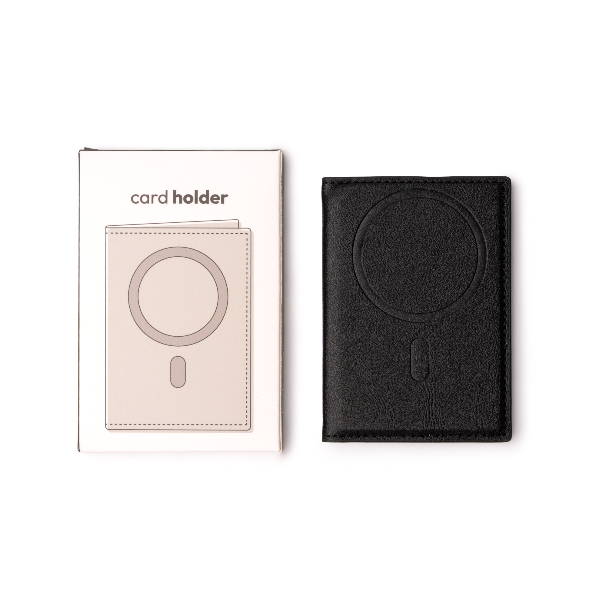 Suport card magnetic pliabil din PU. Accesoriul ideal pentru transportul cardurilor lângă telefon datorită sistemului magnetic. Cu trei compartimente interne și unul extern pentru carduri diferite.