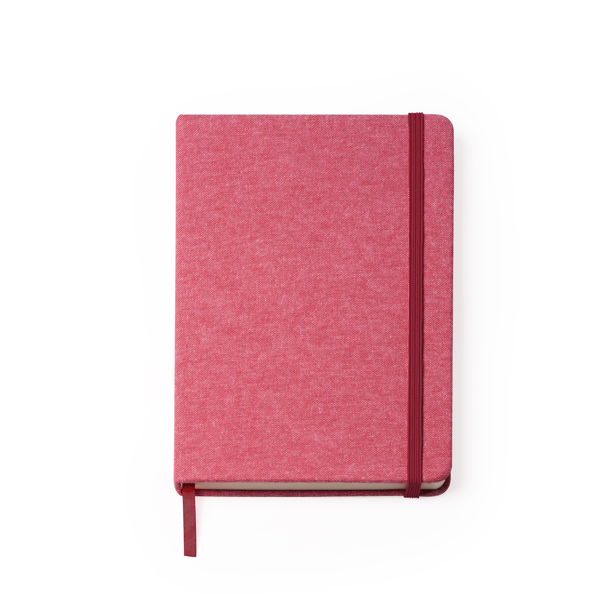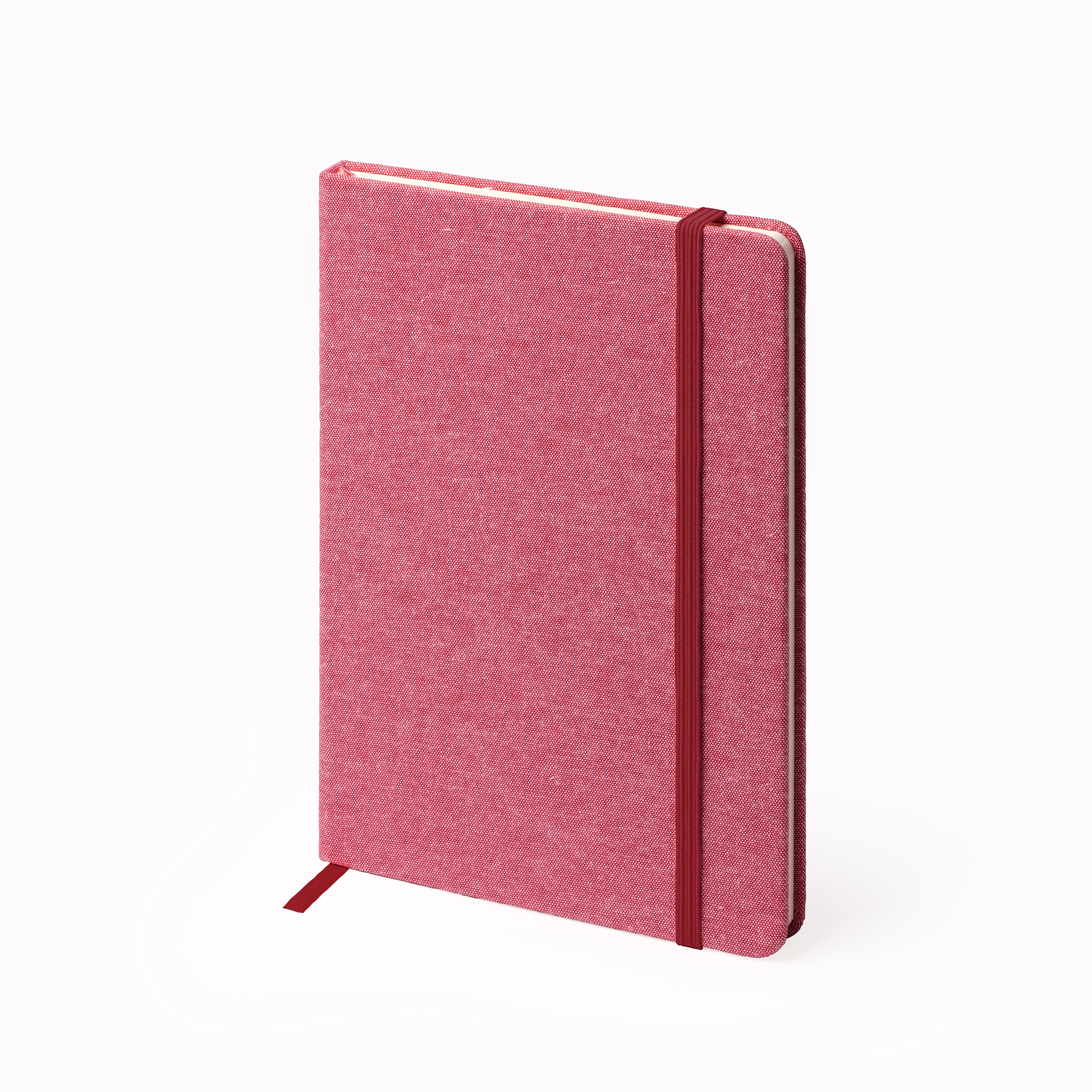Blocnotes A5 cu coperți din bumbac. Marcaj pagină și bandă elastică. 100 foi simple.