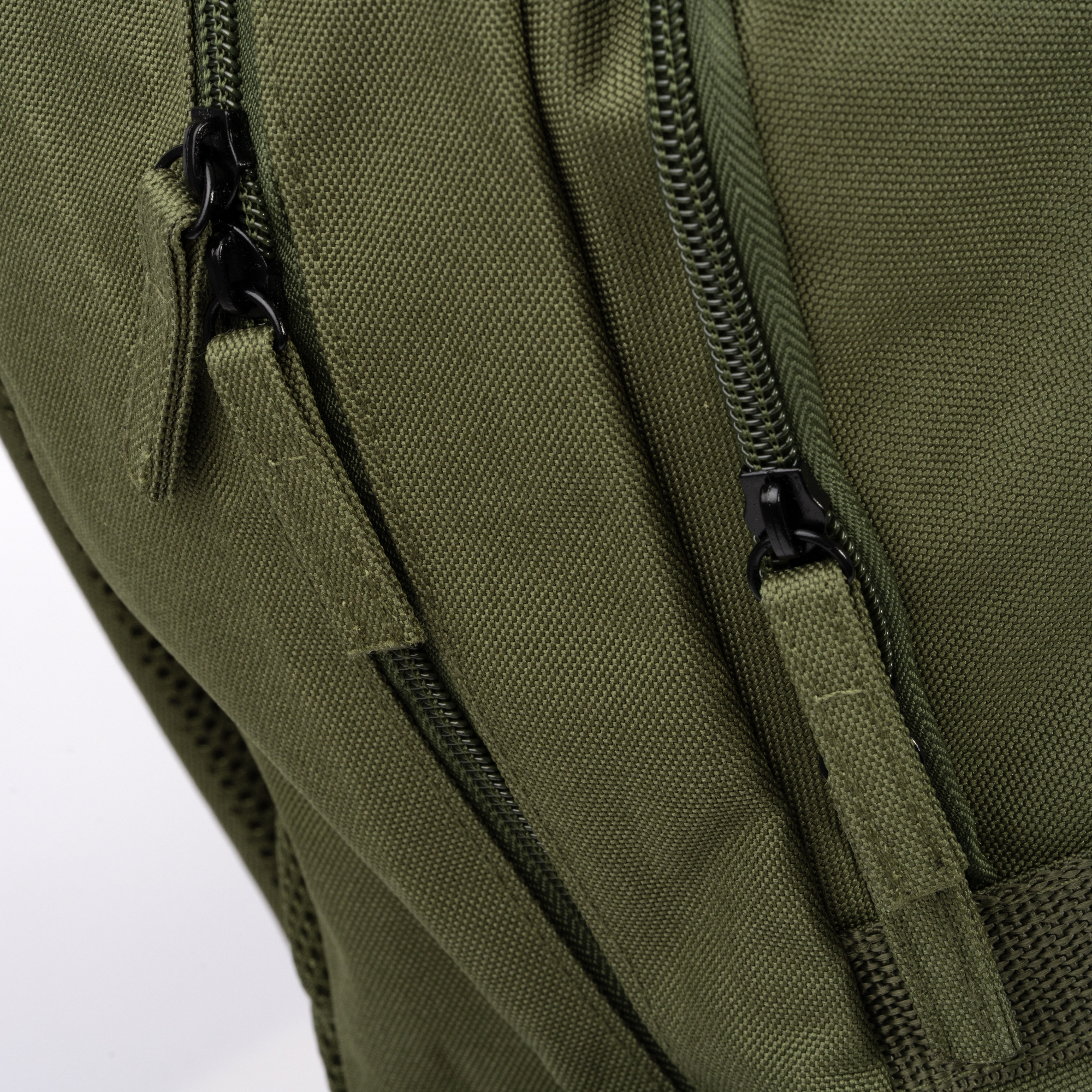 Rucsac din poliester 900D RPET rezistent cu spate căptușit. Compartimentul principal dispune de un buzunar căptușit pentru laptopuri de până la 15″ și un altul pentru transportul articolelor mici și mijlocii. Buzunar frontal și două buzunare laterale cu design micro-perforat cu carabină care asigură potrivirea și siguranța acestuia.