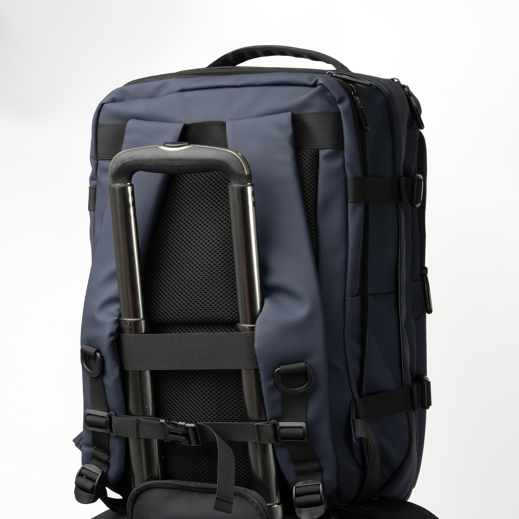 Rucsac practic extensibil din piele PU. Oferă o mare capacitate și confort, deoarece are partea din spate și mânerele căptușite și o curea practică pentru troller. Compartimentul principal include un separator cu plasă și fermoar și mai multe buzunare interioare mai mici pentru depozitarea obiectelor mici. Are un compartiment frontal cu buzunare mici și o curea cu un inel de chei încorporat, astfel încât să nu vă pierdeți cheile. Dispune de un buzunar frontal pentru transportul obiectelor mai mici, precum și un buzunar la spate cu compartiment dublu căptușit pentru transportul laptop-urilor de până la 15″ lângă un alt dispozitiv electronic. Include carabine laterale care permit ajustarea dimensiunilor și un fermoar de deschidere care permite mărirea acestora. Un cablu de conectare extern al bateriei este inclus pe una dintre laturile sale. Panourile sunt căptușite pentru a vă proteja obiectele personale, iar mânerele sunt reglabile.